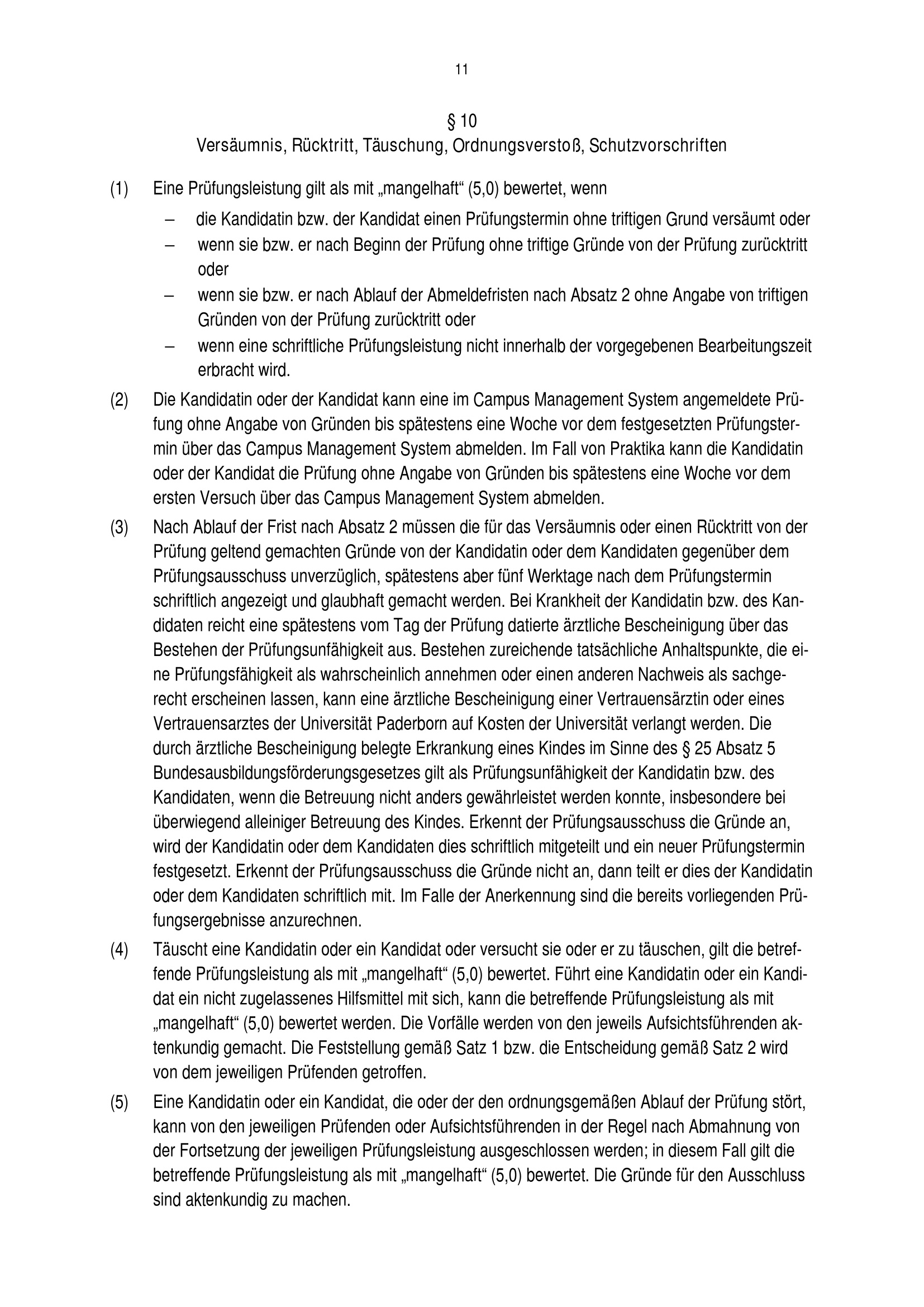§ 10 Versäumnis, Rücktritt, Täuschung, Ordnungsverstoß, Schutzvorschriften