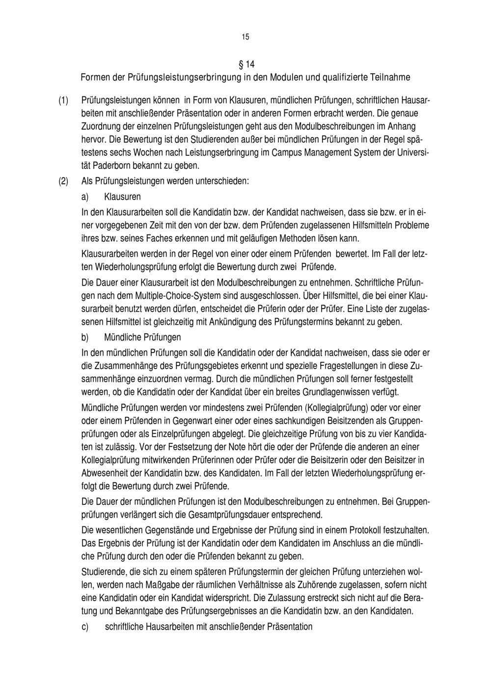 § 14 Formen der Prüfungsleistungserbringung in den Modulen und qualifizierte Tei[...]