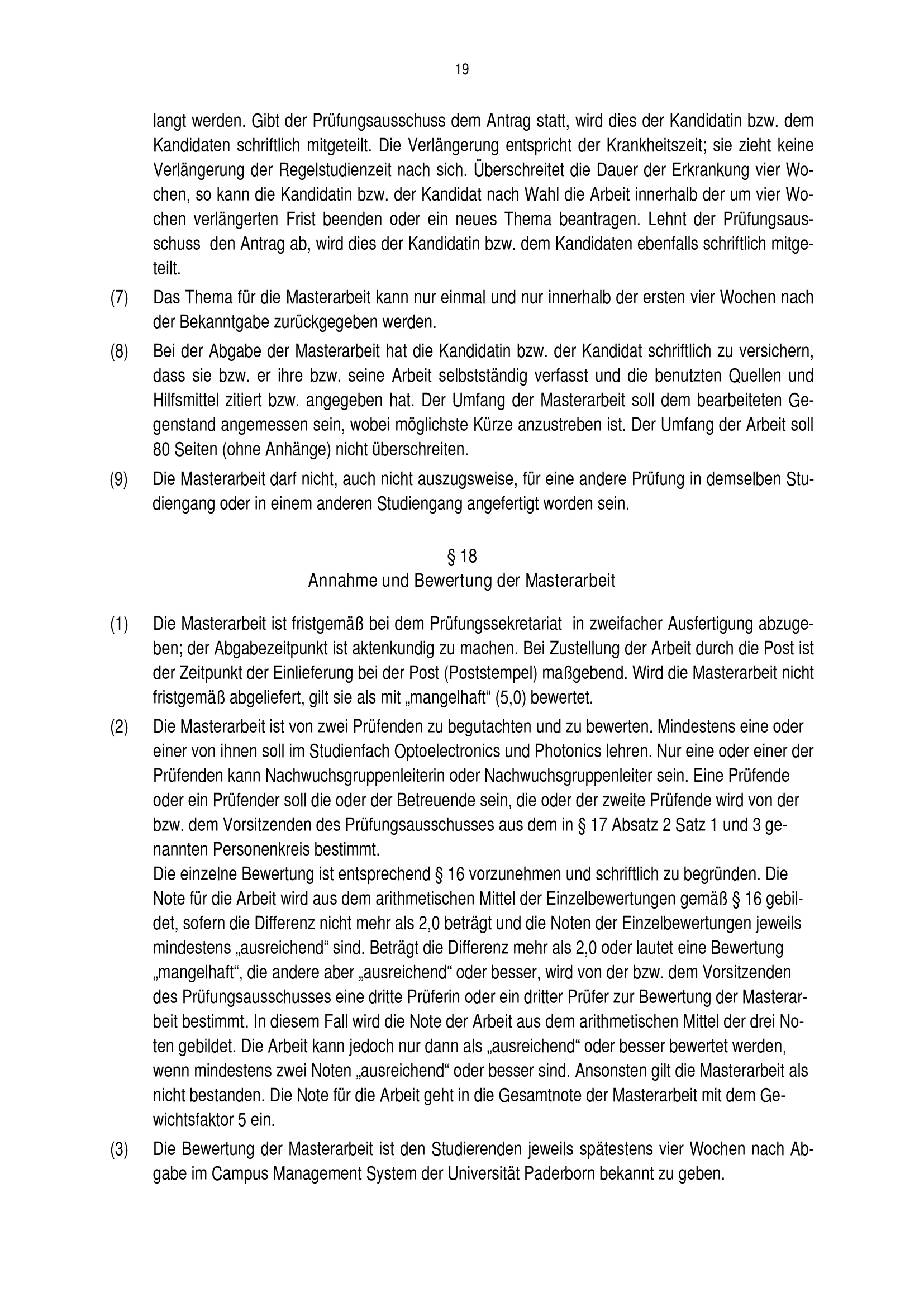 § 18 Annahme und Bewertung der Masterarbeit