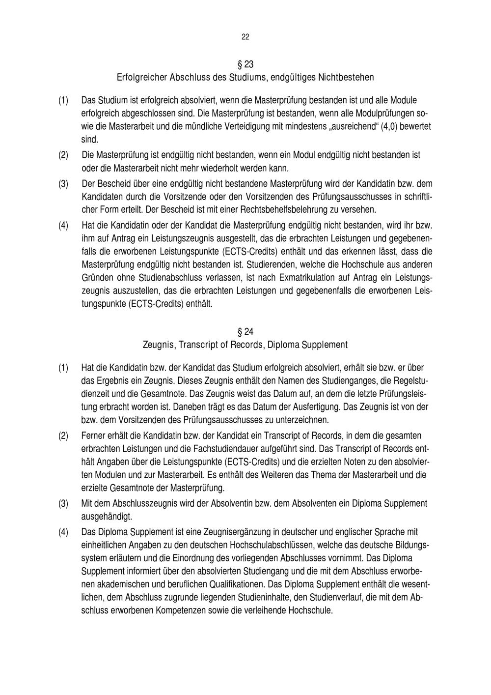 § 23 Erfolgreicher Abschluss des Studiums, endgültiges Nichtbestehen
