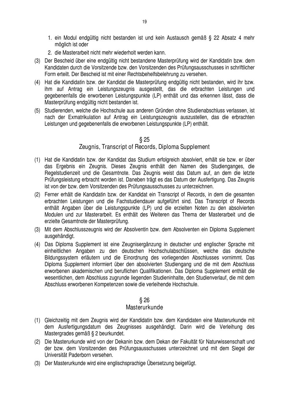 § 25 Zeugnis, Transcript of Records, Diploma Supplement