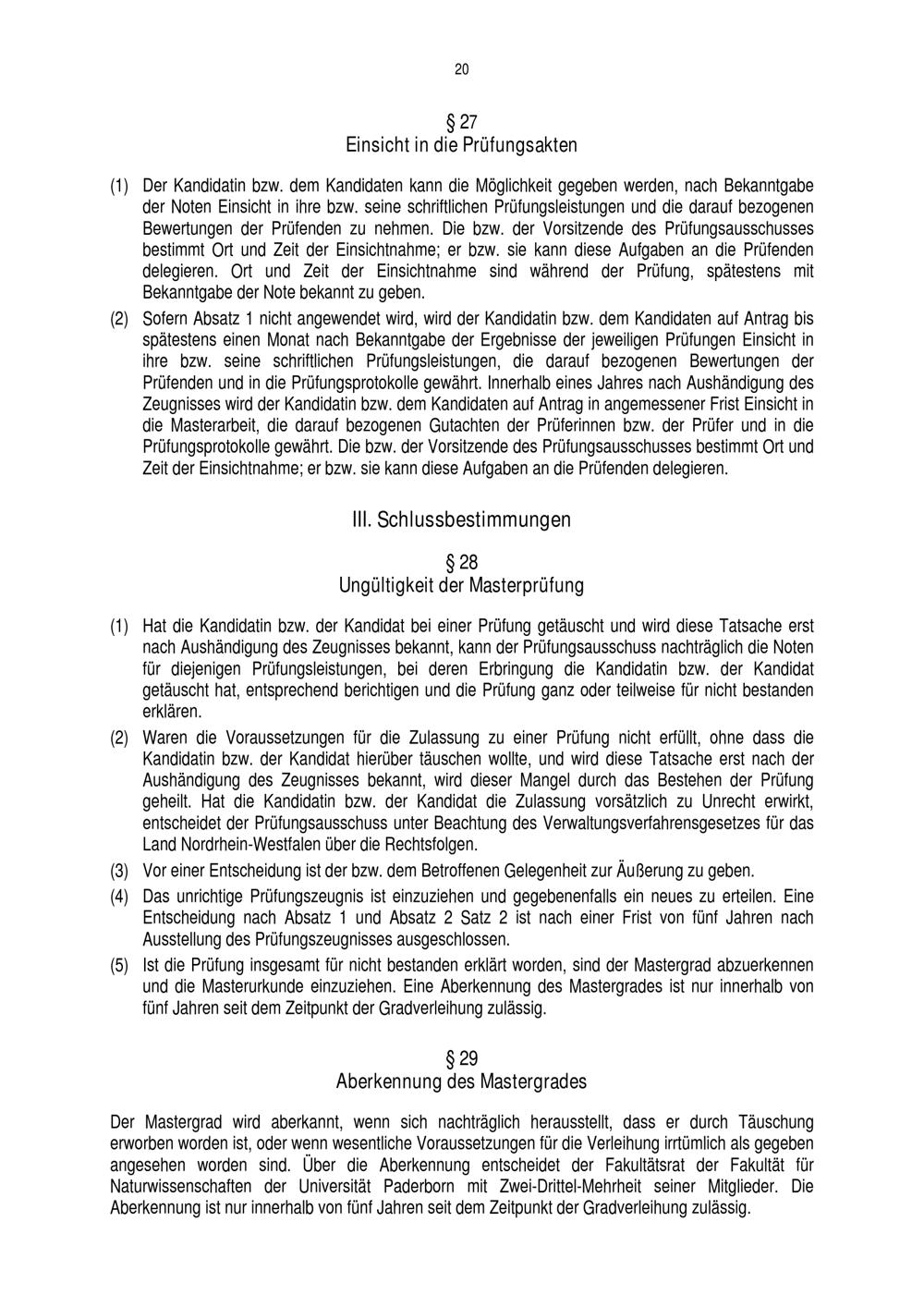 Prüfungsordnung für den Masterstudiengang Physik der Fakultät für Naturwissenschaften an der Universität Paderborn : vom 16. Juni 2017