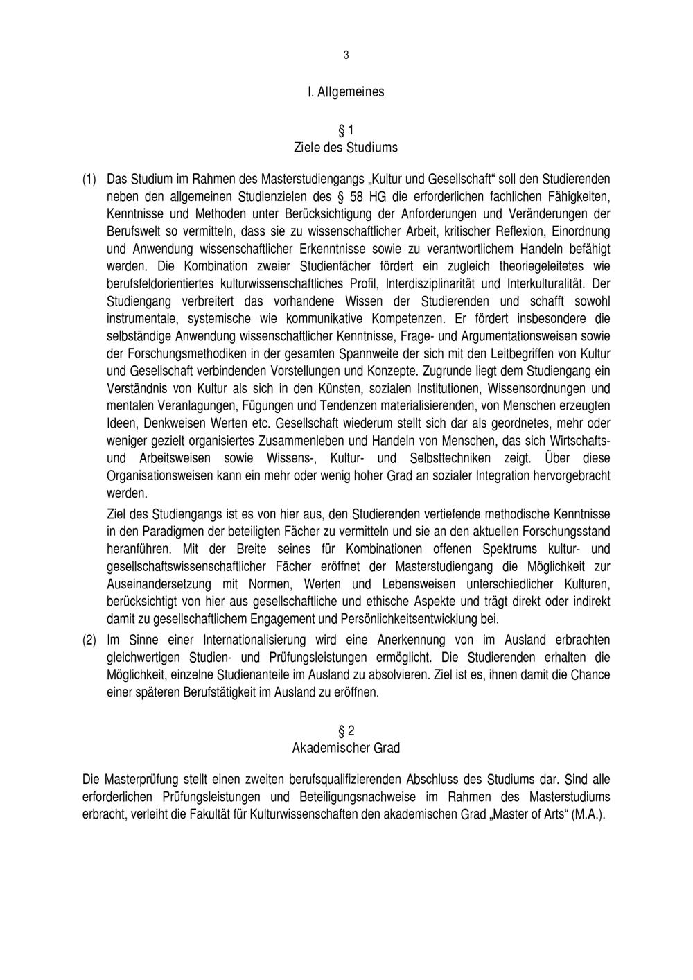 Allgemeine Bestimmungen der Prüfungsordnung für den Masterstudiengang Kultur und[...]