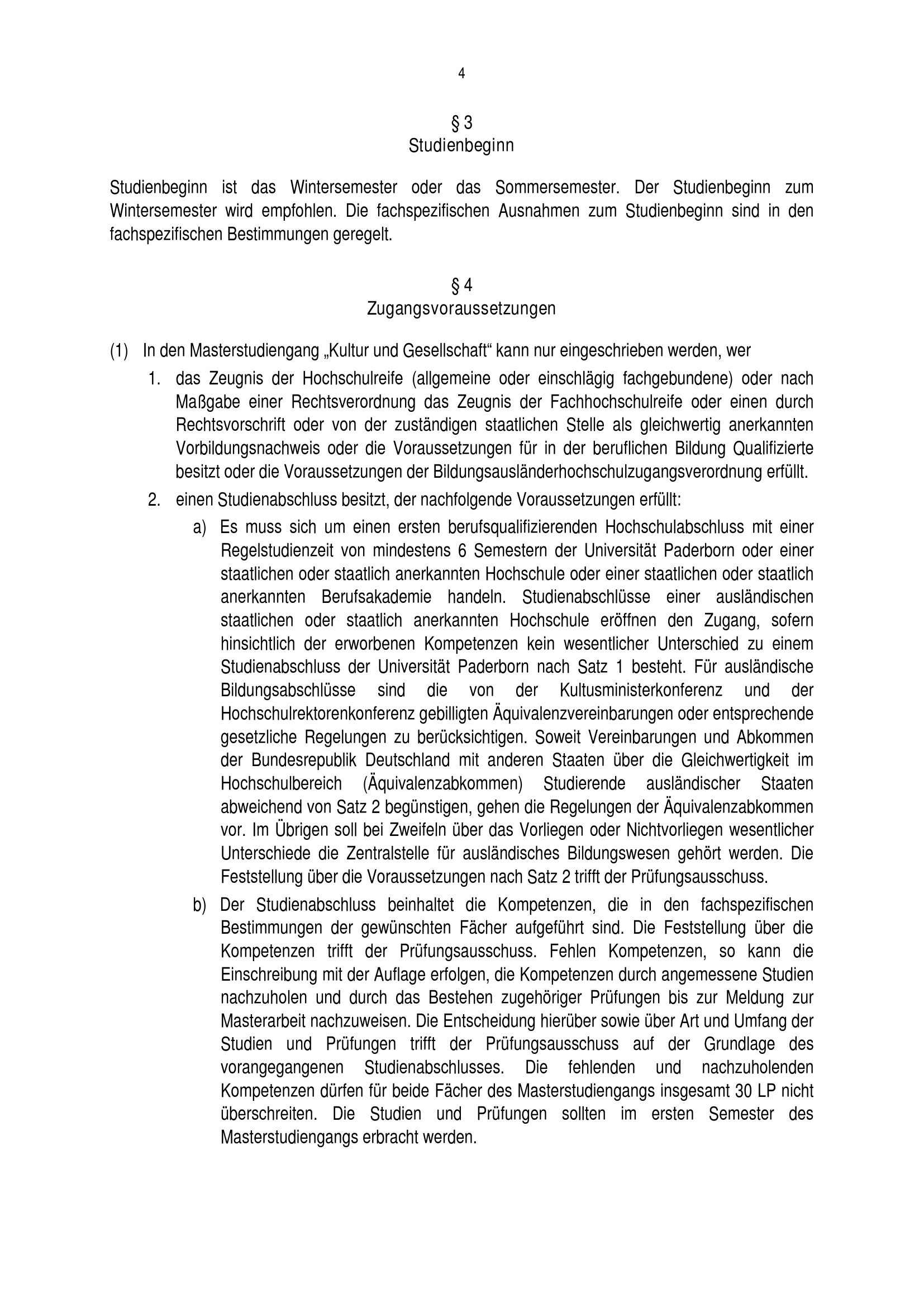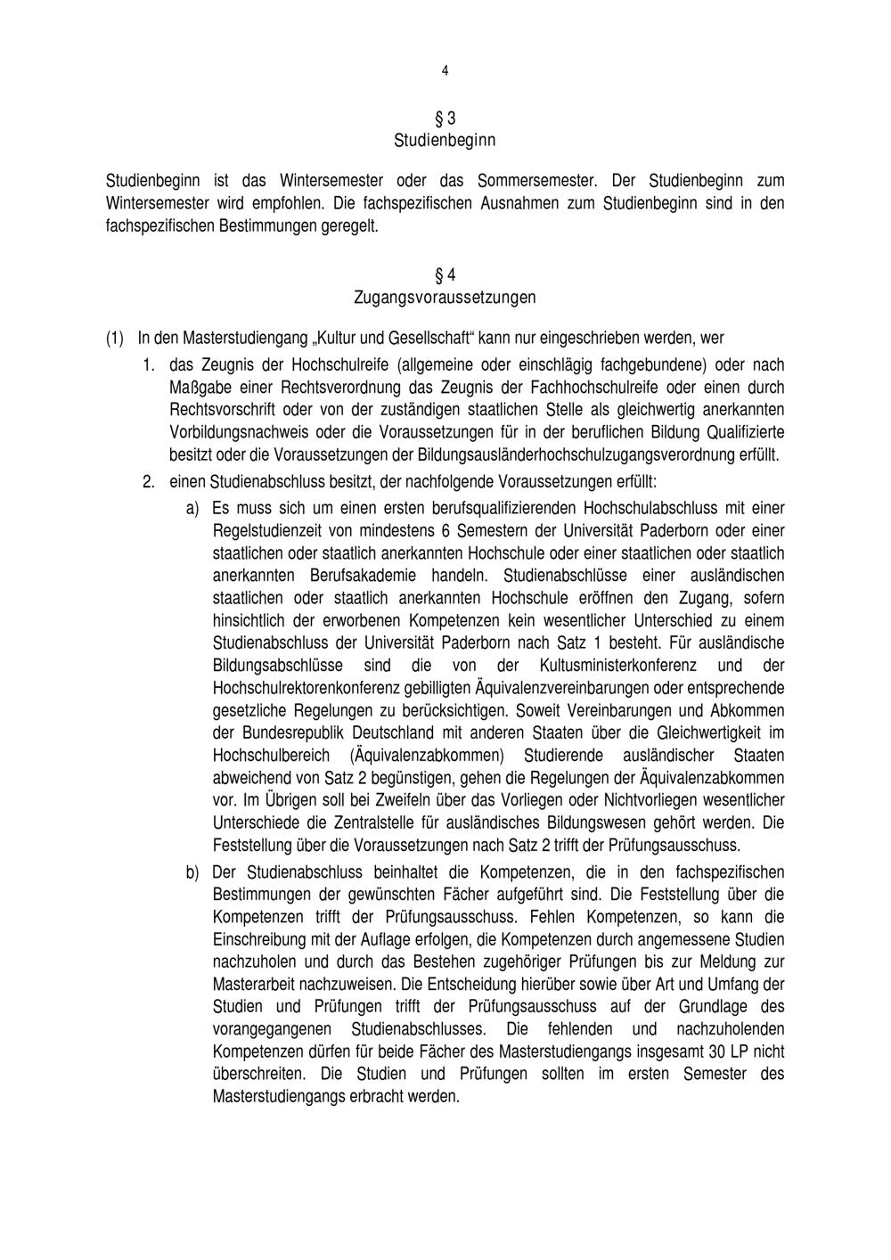 Allgemeine Bestimmungen der Prüfungsordnung für den Masterstudiengang Kultur und Gesellschaft der Fakultät für Kulturwissenschaften an der Universität Paderborn : vom 16. Juni 2017