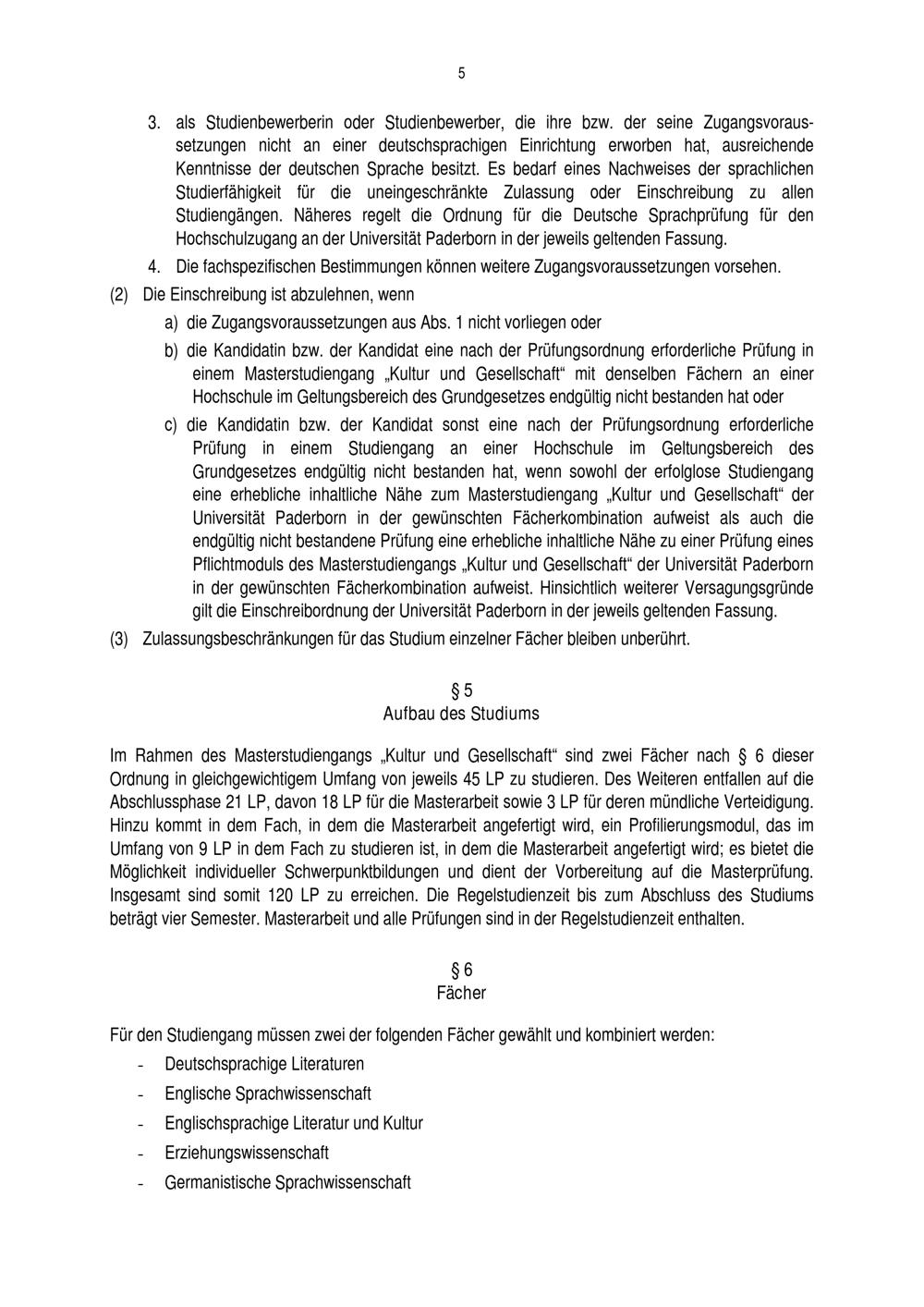 Allgemeine Bestimmungen der Prüfungsordnung für den Masterstudiengang Kultur und Gesellschaft der Fakultät für Kulturwissenschaften an der Universität Paderborn : vom 16. Juni 2017