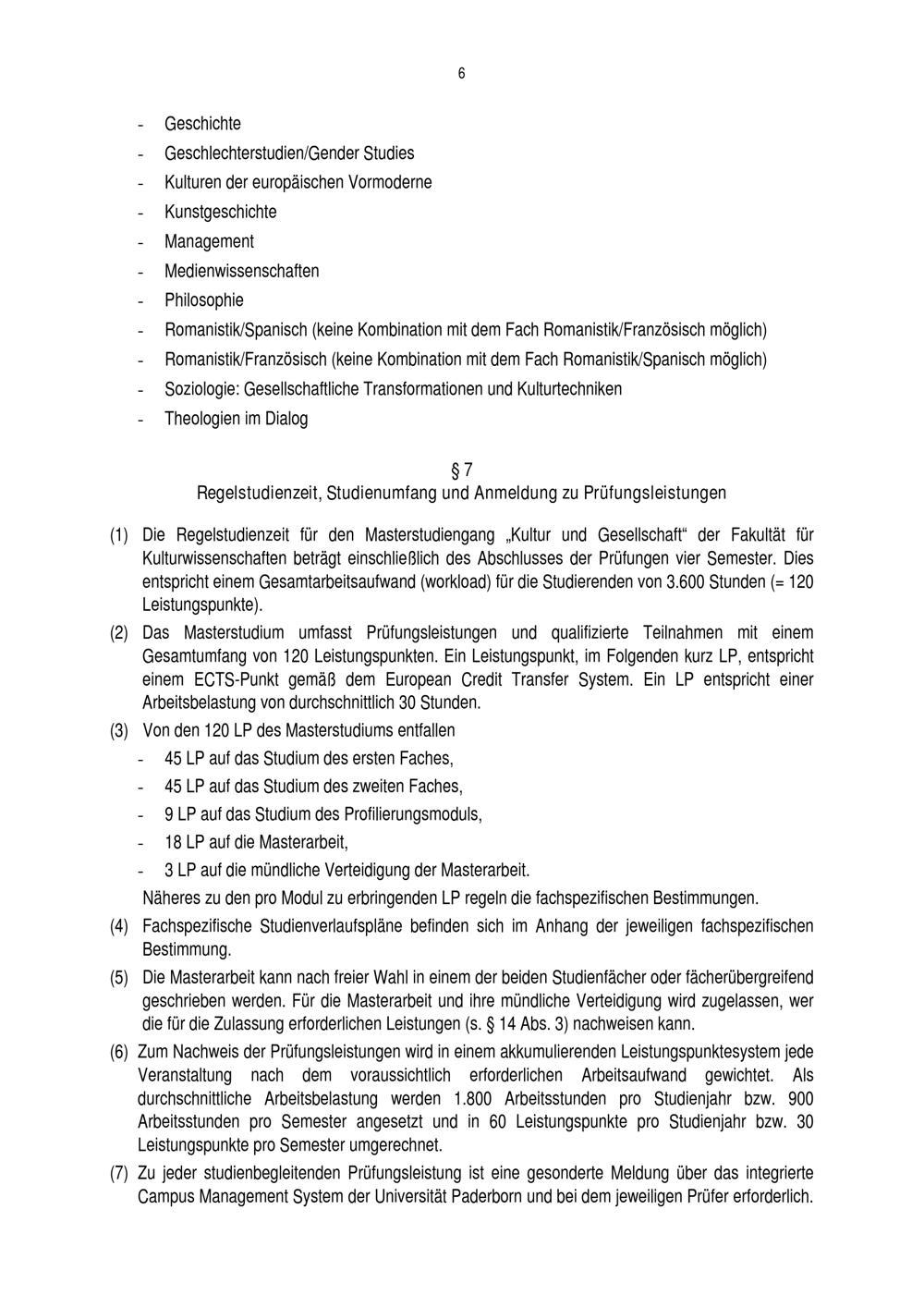 Allgemeine Bestimmungen der Prüfungsordnung für den Masterstudiengang Kultur und[...]