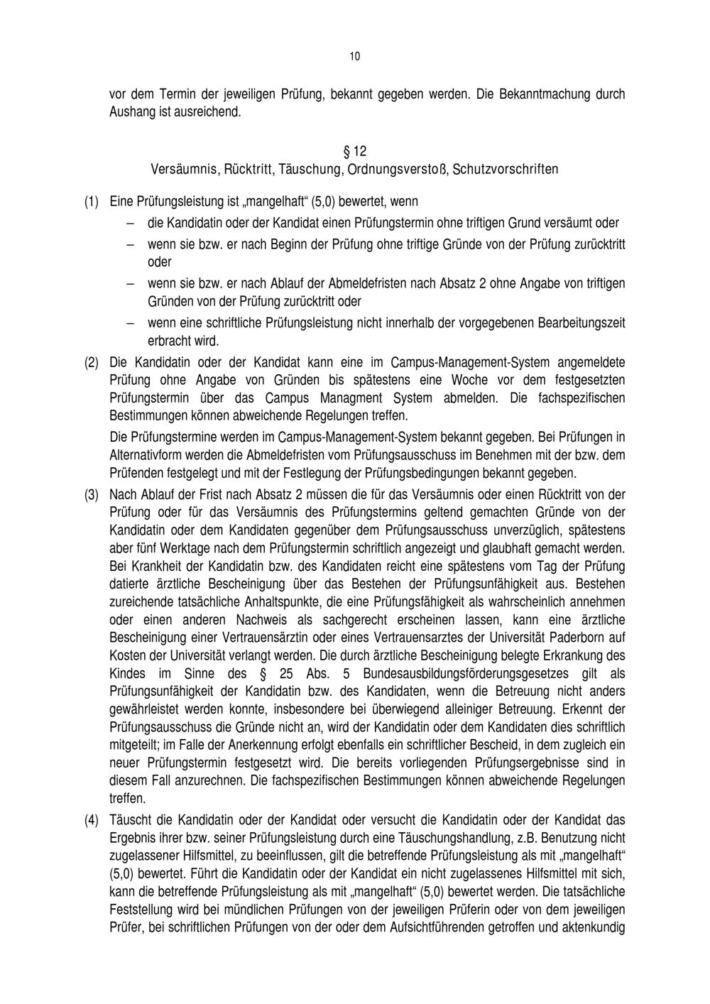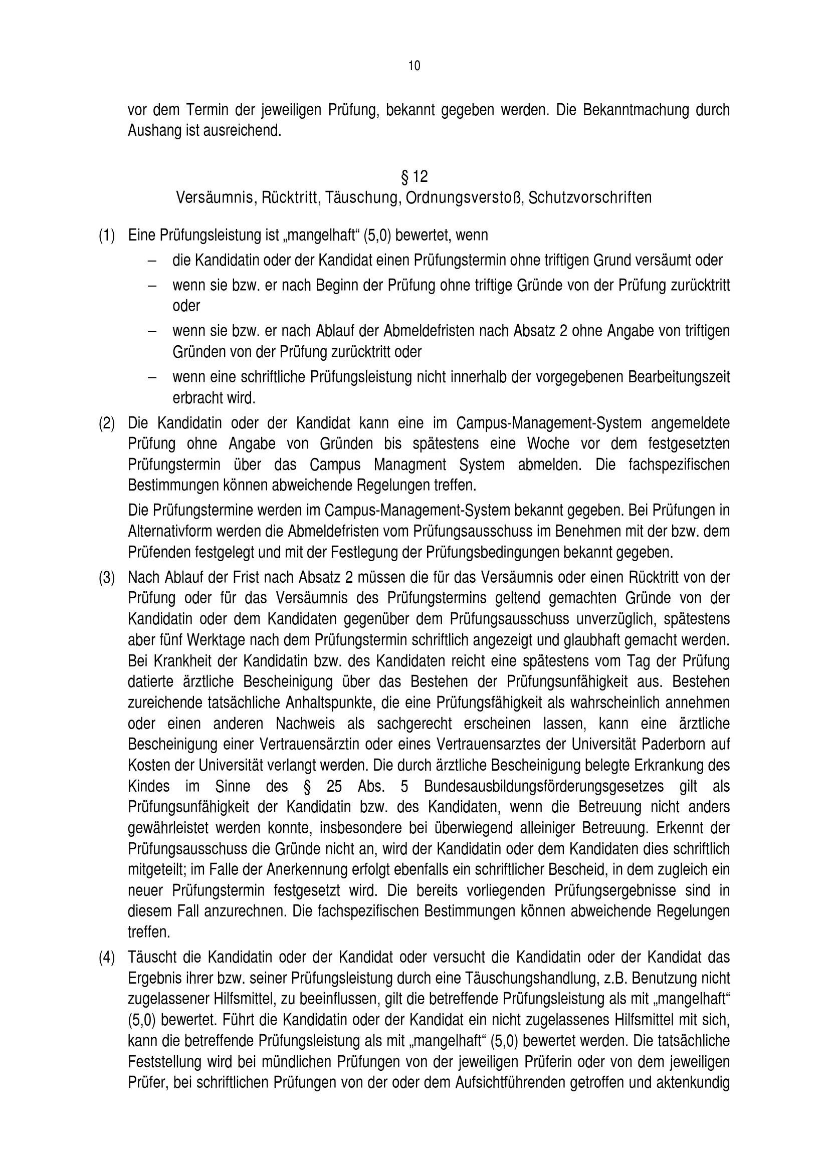 § 12 Versäumnis, Rücktritt, Täuschung, Ordnungsverstoß, Schutzvorschriften