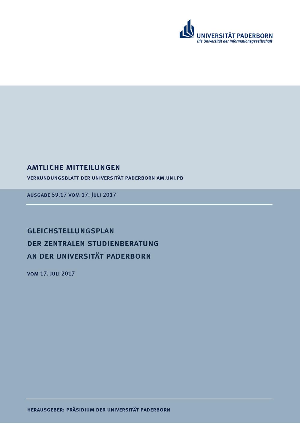 Gleichstellungsplan der Zentralen Studienberatung an der Universität Paderborn : vom 17. Juli 2017
