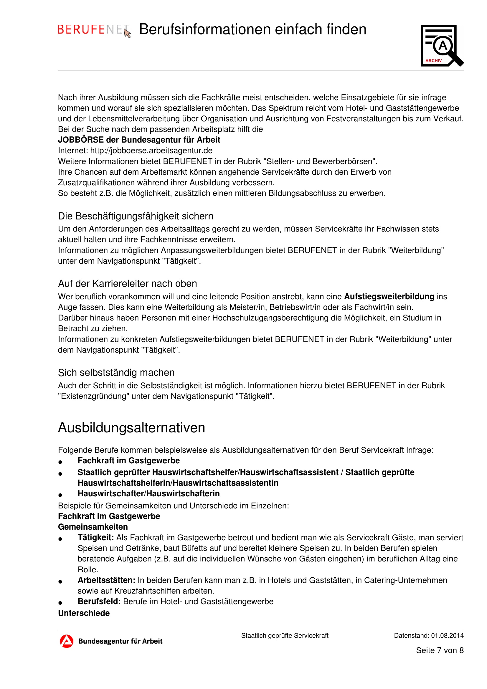 Berufsfeldanalyse des doppelqualifizierenden Bildungsgangs : Staatlich geprüfte Assistentin für Ernährung und Versorgung, Schwerpunkt Service an Berufsfachschulen in Nordrhein-Westfalen / vorgelegt von Studiendirektorin Rita Brand