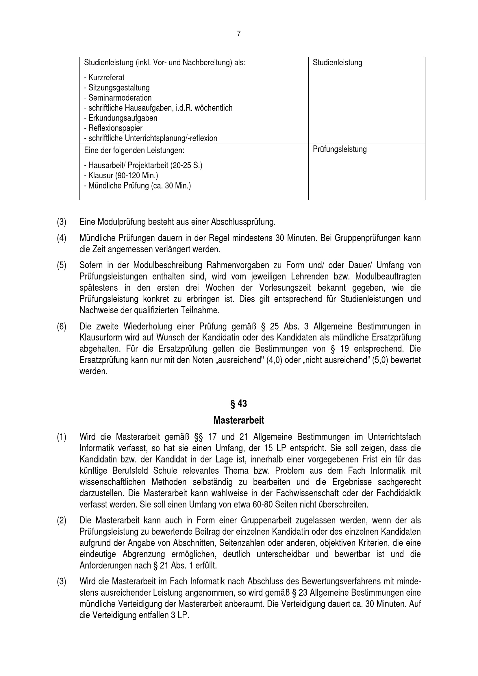 § 42 Prüfungsleistungen und Formen der Leistungserbringung