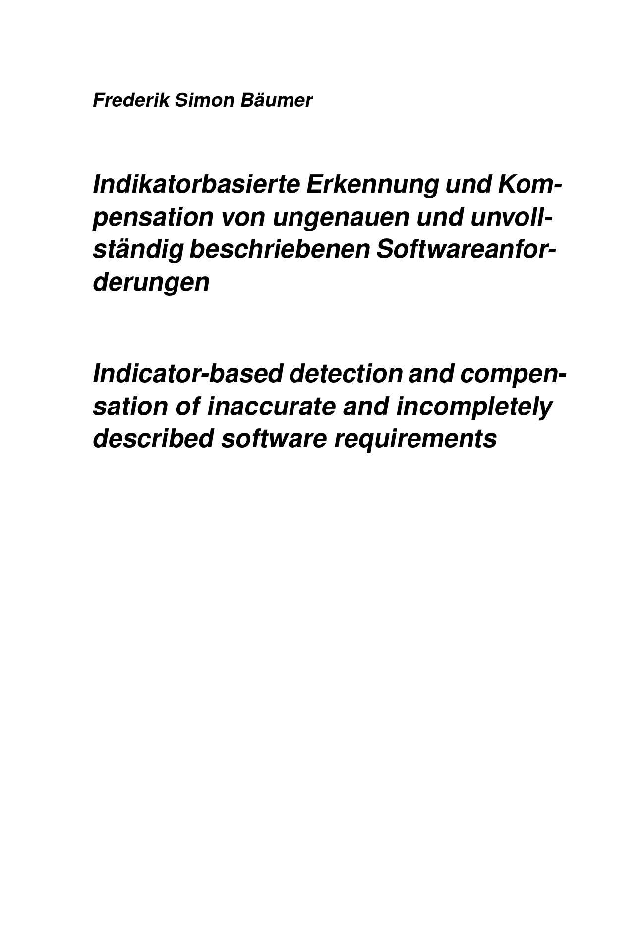 Indikatorbasierte Erkennung und Kompensation von ungenauen und unvollständig beschriebenen Softwareanforderungen / Frederik Simon Bäumer
