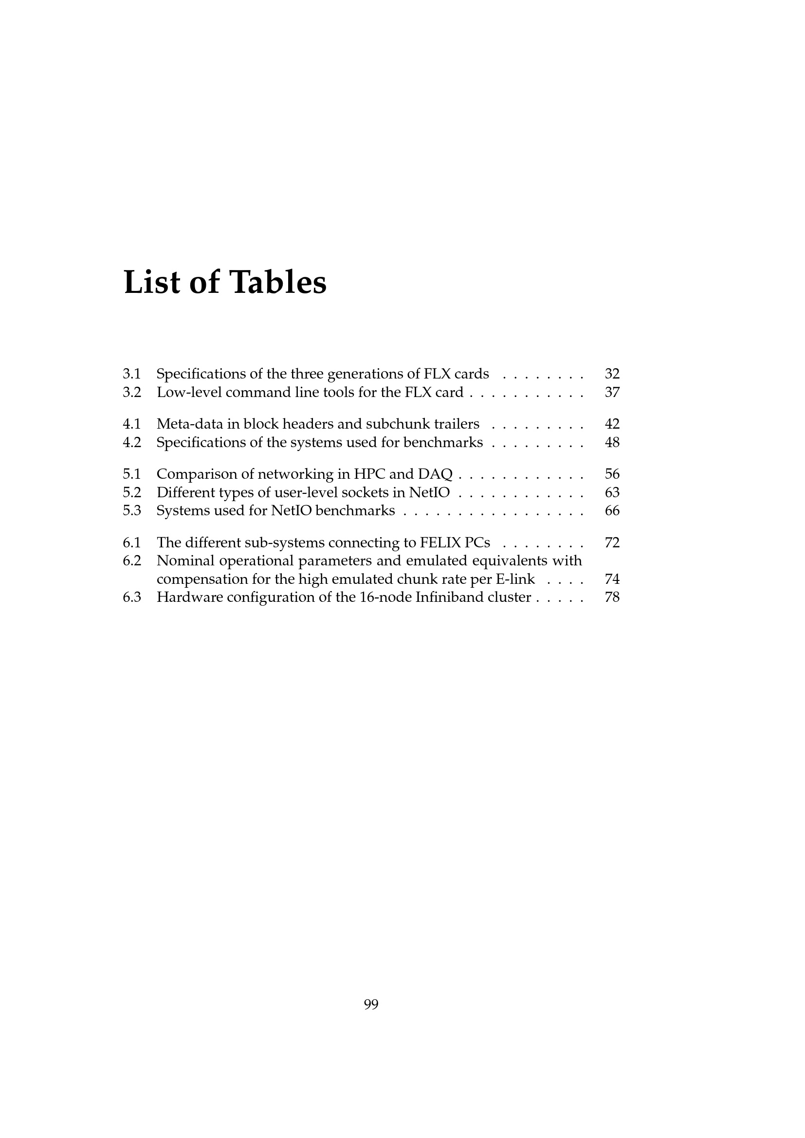 List of Tables