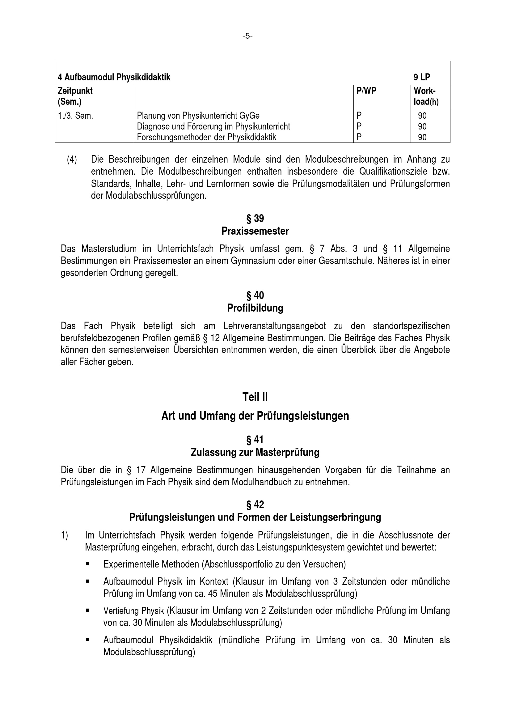 Besondere Bestimmungen der Prüfungsordnung für den Masterstudiengang Lehramt an Gymnasien und Gesamtschulen mit dem Unterrichtsfach Physik an der Universität Paderborn : vom 29. September 2017