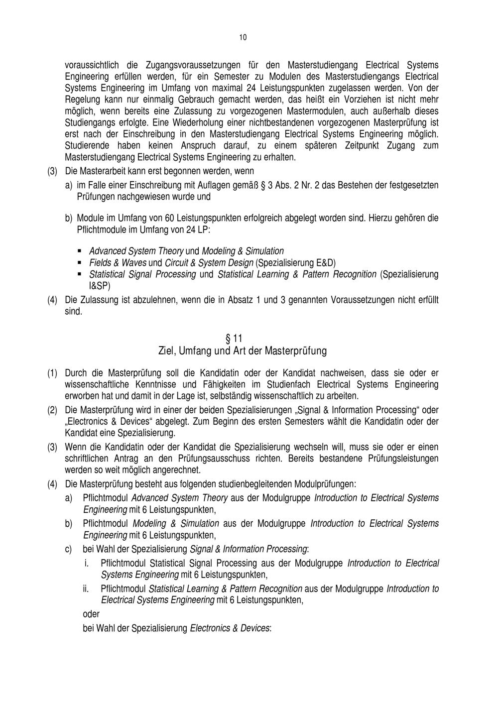 Prüfungsordnung für den Masterstudiengang Electrical Systems Engineering der Fakultät[...]