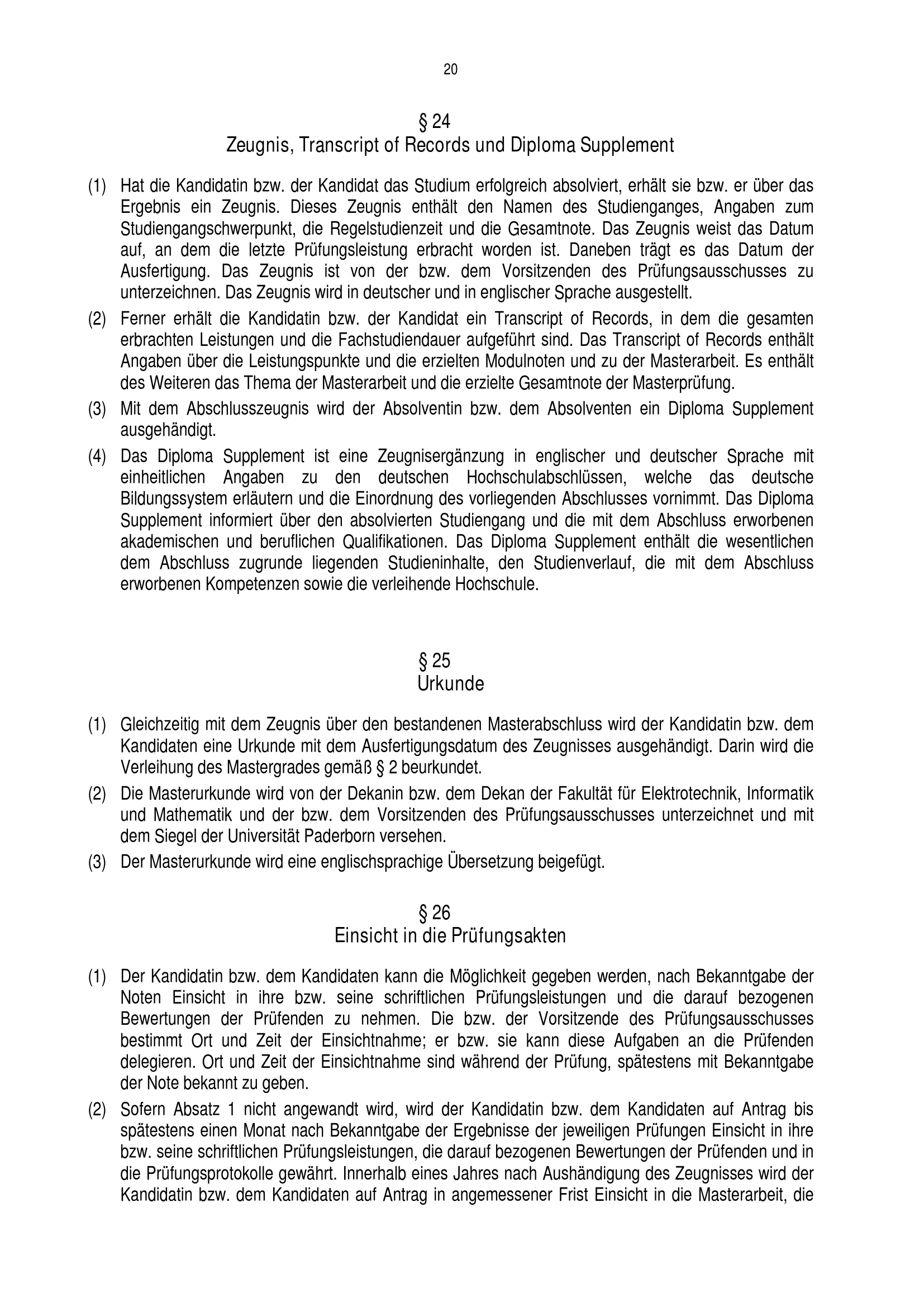 § 24 Zeugnis, Transcript of Records und Diploma Supplement