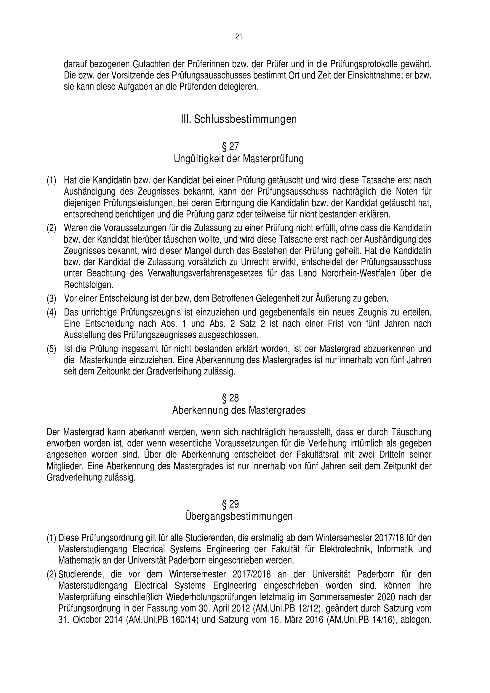Prüfungsordnung für den Masterstudiengang Electrical Systems Engineering der Fakultät für Elektrotechnik, Informatik und Mathematik an der Universität Paderborn : vom 30. Oktober 2017
