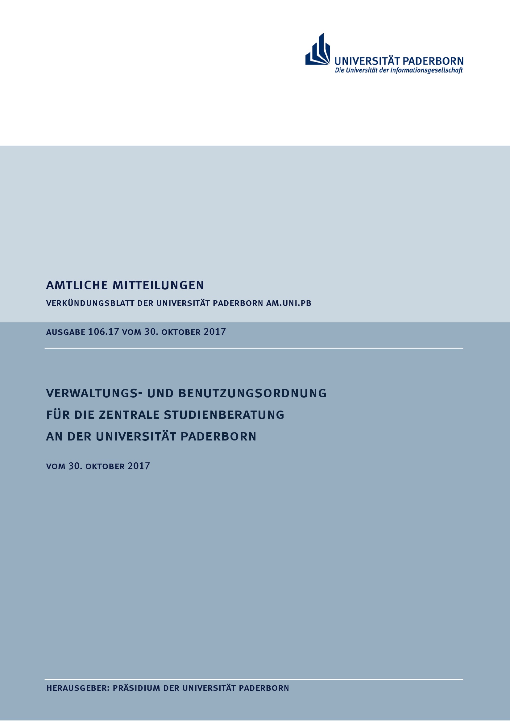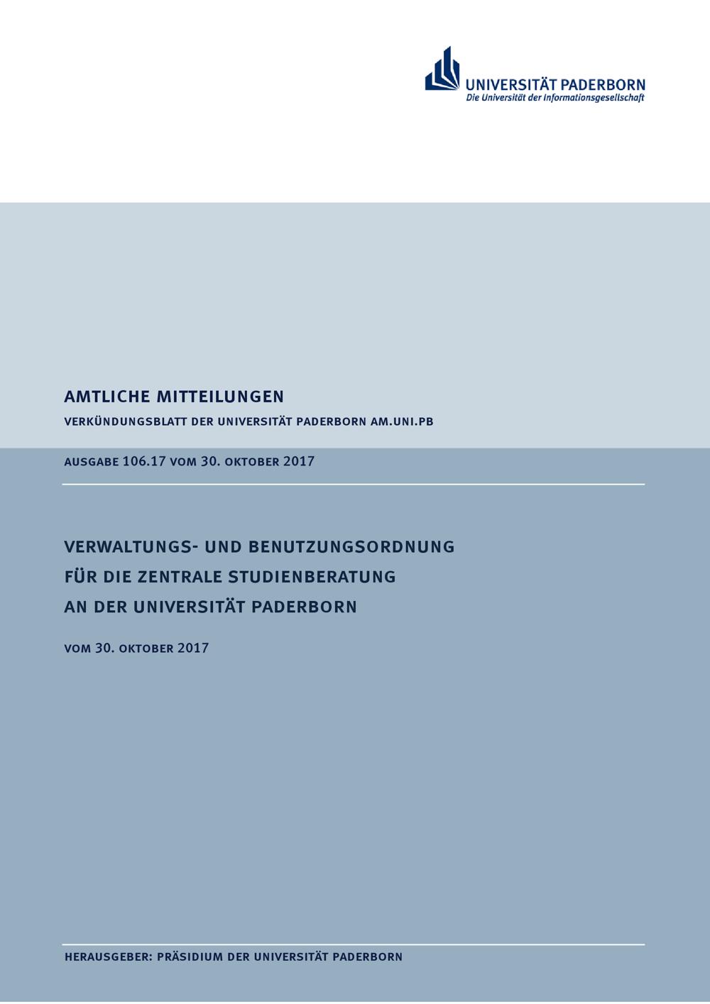 Verwaltungs- und Benutzungsordnung für die Zentrale Studienberatung an der Universität Paderborn : vom 30. Oktober 2017
