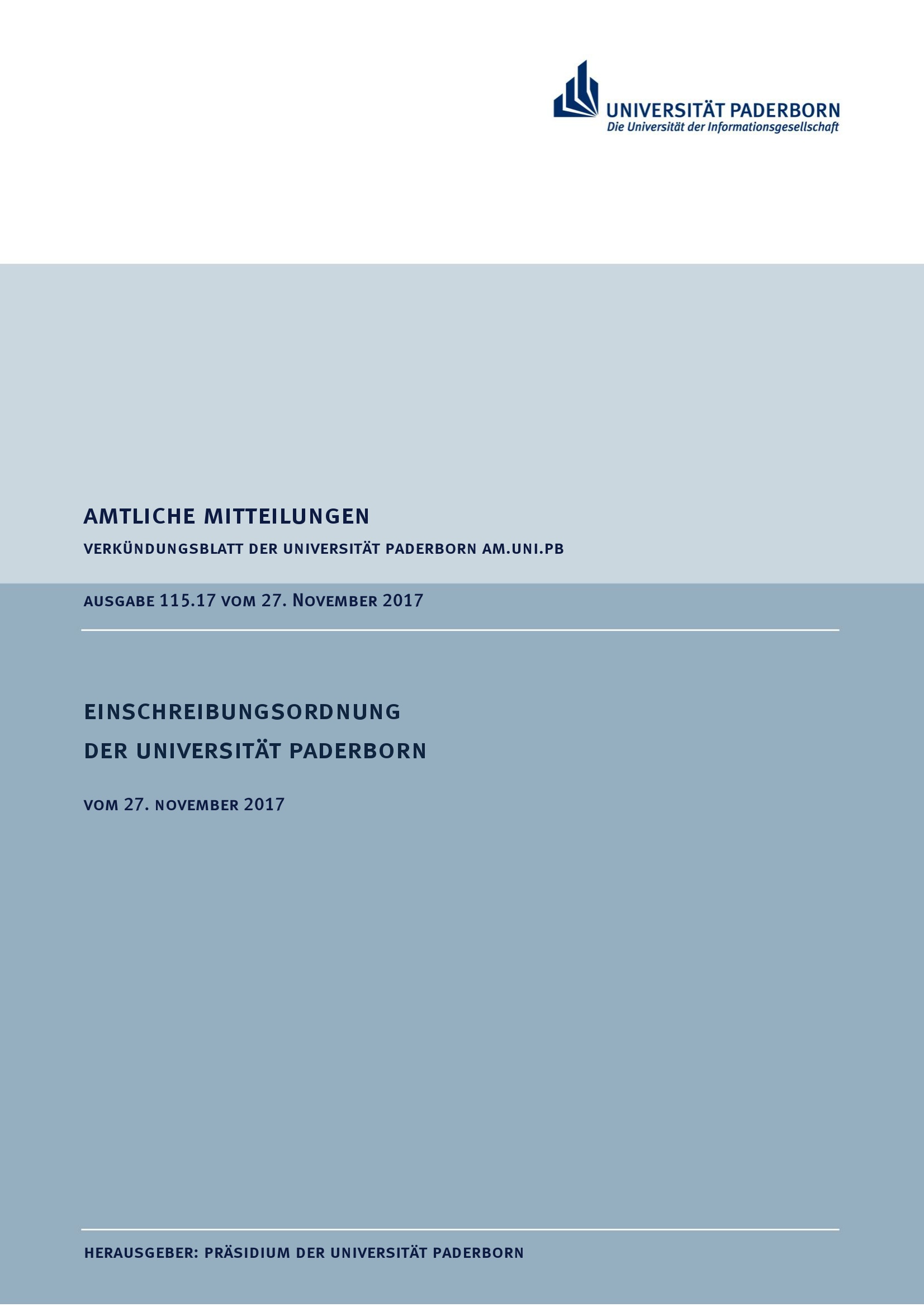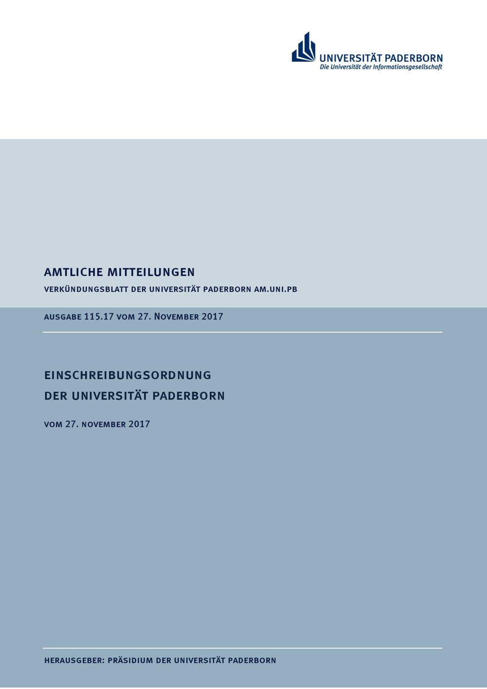 Einschreibungsordnung der Universität Paderborn : vom 27. November 2017