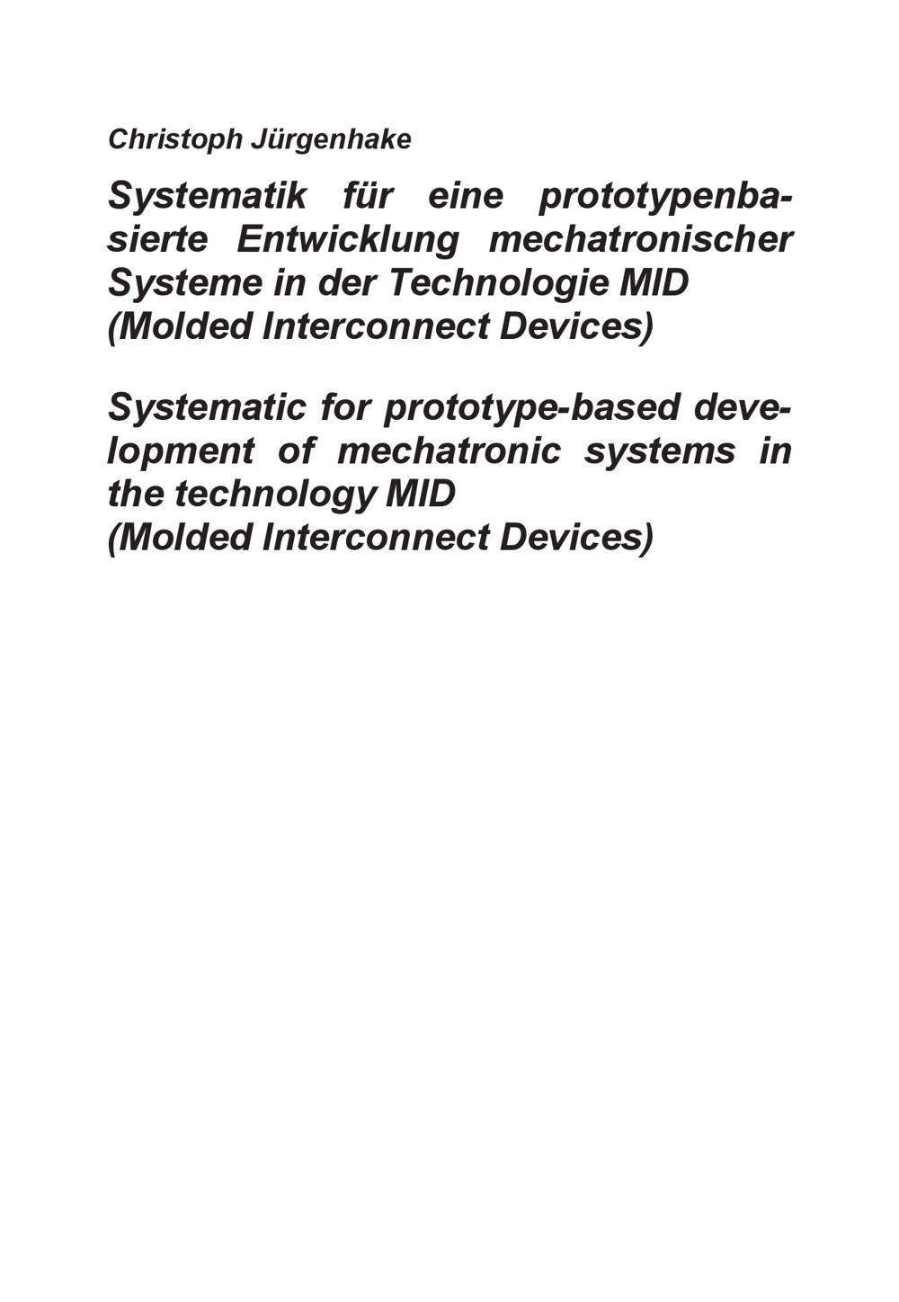 Systematik für eine prototypenbasierte Entwicklung mechatronischer Systeme in der Technologie MID (Molded Interconnect Devices) / Christoph Jürgenhake