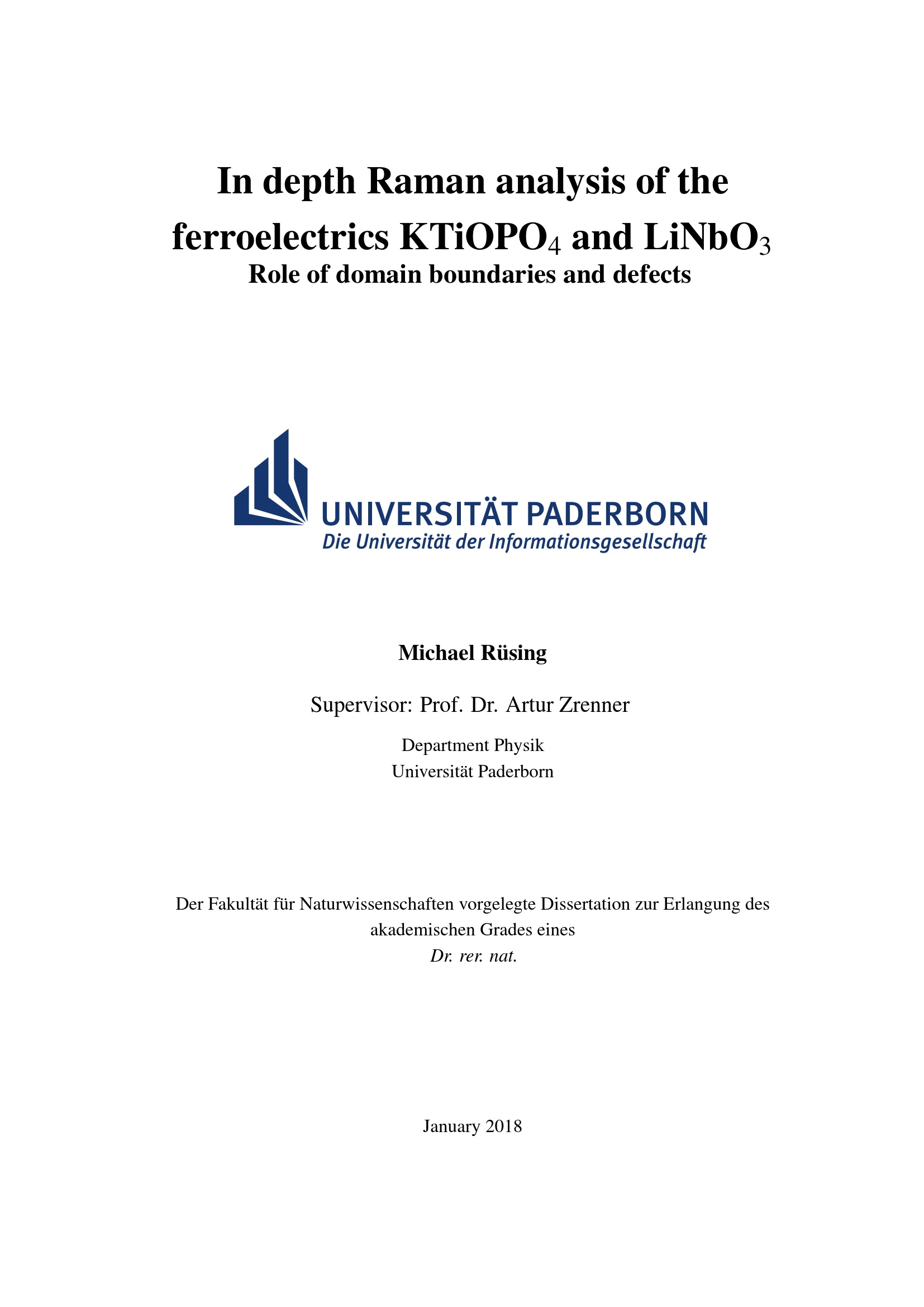 In depth Raman analysis of the ferroelectrics KTiOPO4 and LiNbO3 : role of domain boundaries and defects / Michael Rüsing ; Supervisor: Prof. Dr. Artur Zrenner