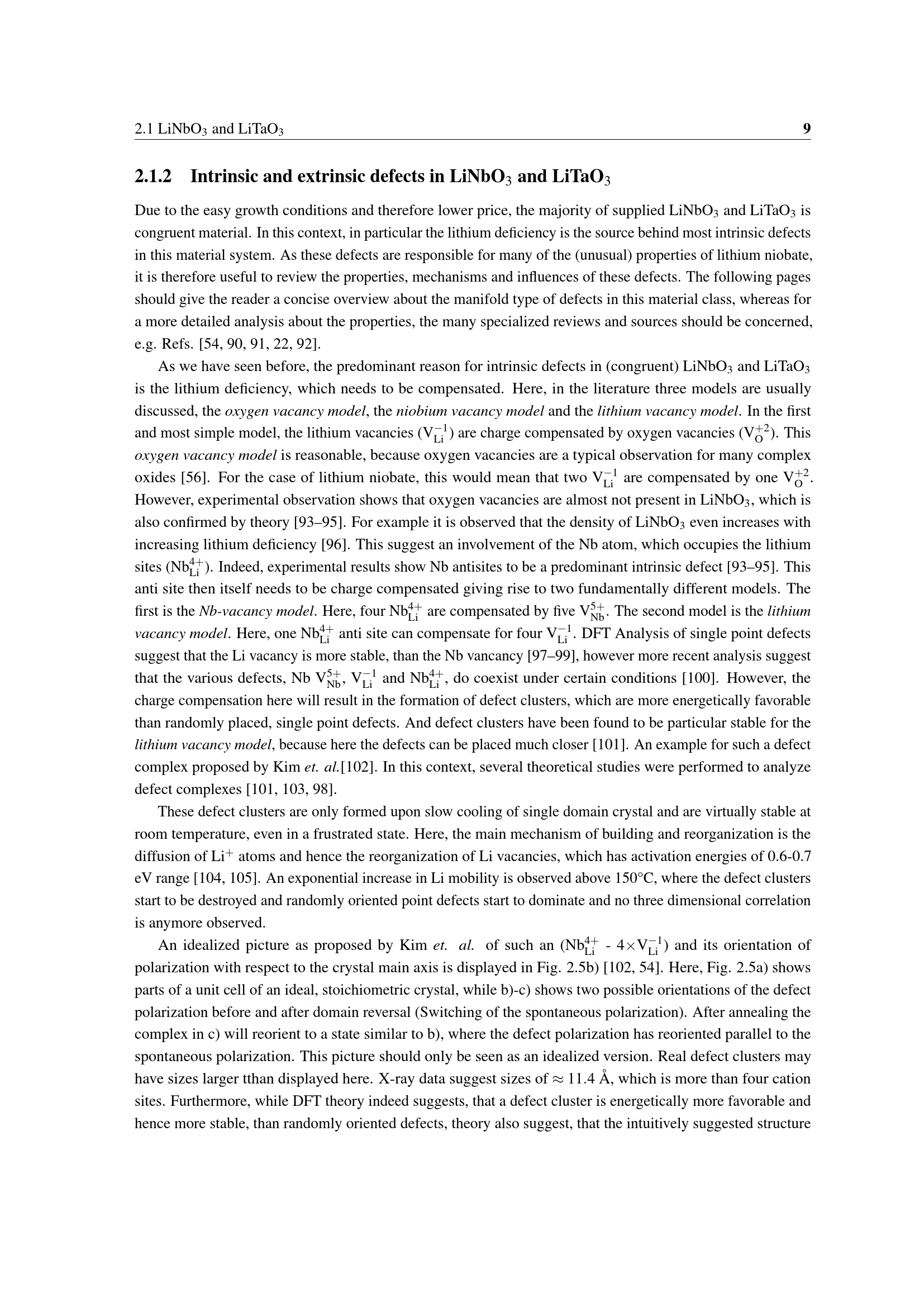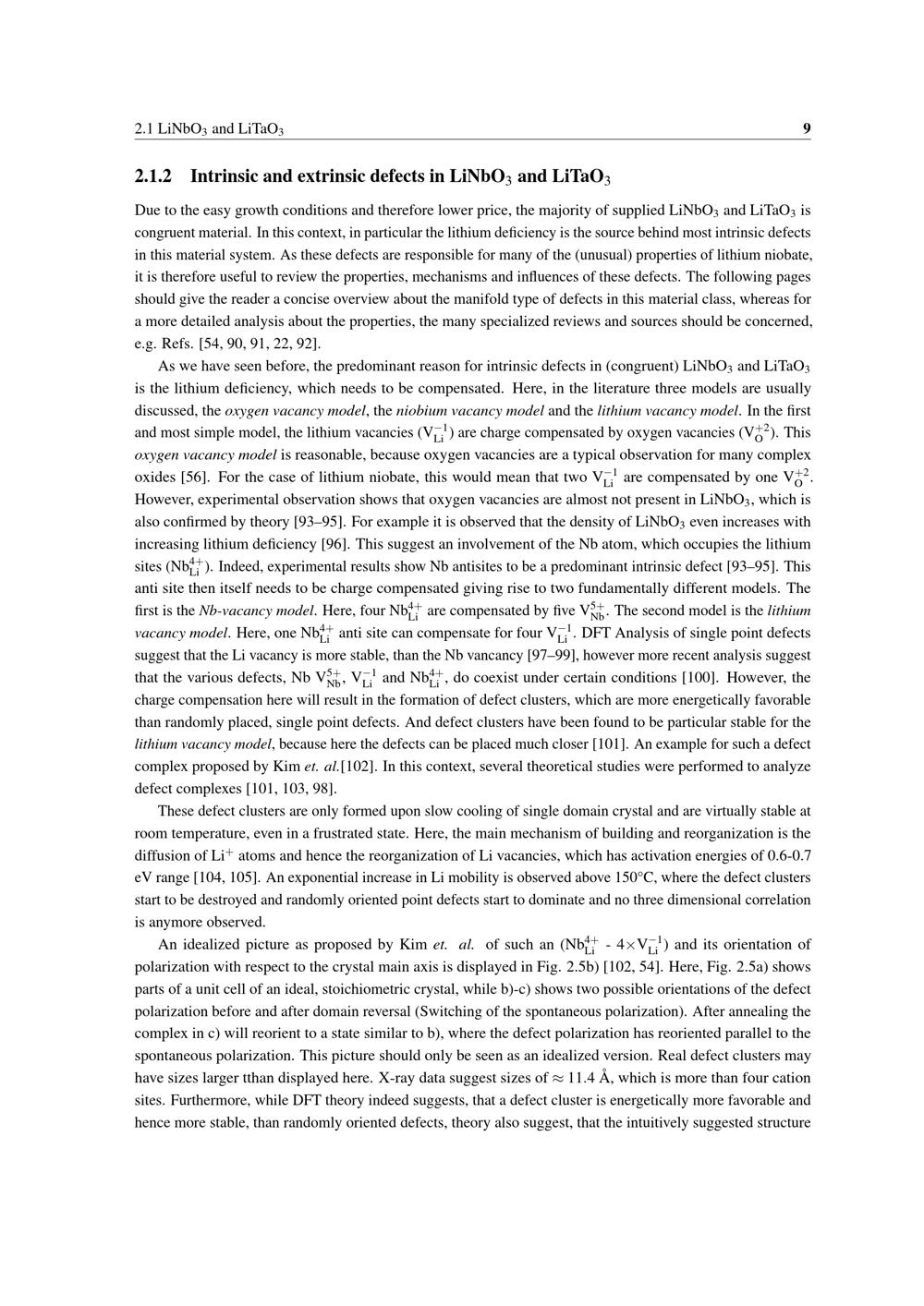 2.1.2 Intrinsic and extrinsic defects in LiNbO3 and LiTaO3