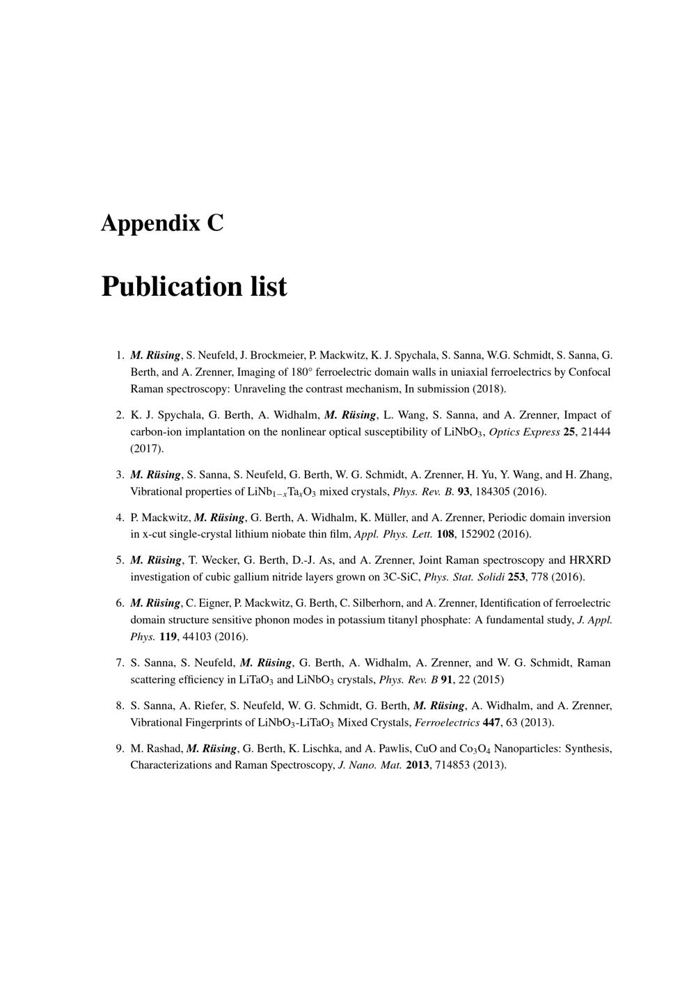 Appendix C Publication list