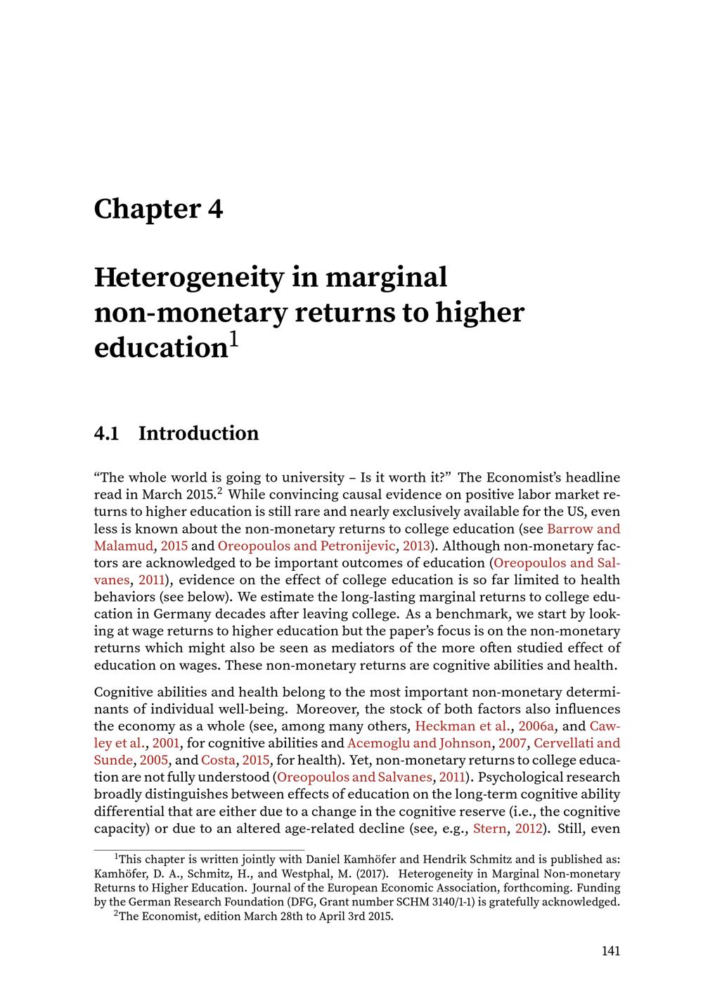 Individual consequences and public challenges of social change : six empirical essays in health economics and economics of education / von Matthias Westphal, Master of Science