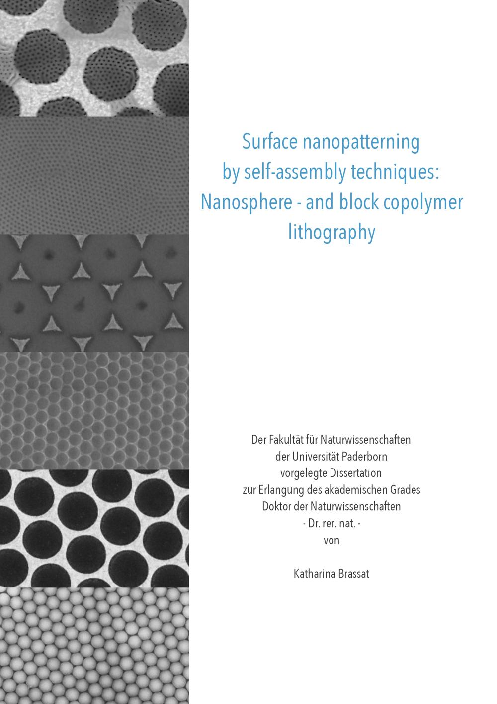 Surface nanopatterning by self-assembly techniques: Nanosphere- and block copolymer lithography / von Katharina Brassat ; Prof. Jörg Lindner, Prof. Heinz-S. Kitzerow, Prof. Wolfgang Bremser