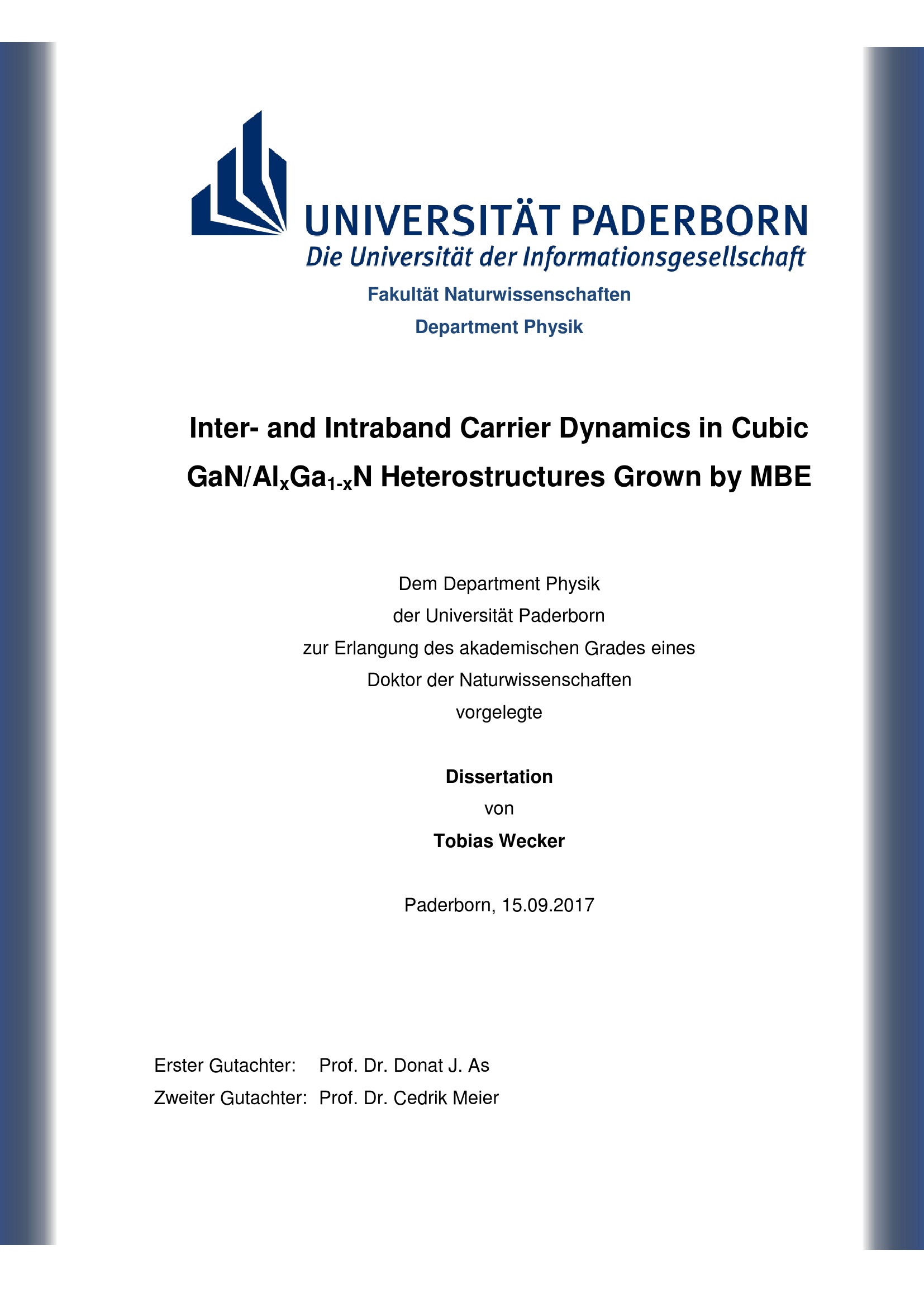 Inter- and Intraband Carrier Dynamics in Cubic GaN/AlxGa1-xN Heterostructures Grown by MBE / Tobias Wecker ; erster Gutachter: Prof. Dr. Donat J. As, zweiter Gutachter: Prof. Dr. Cedrik Meier