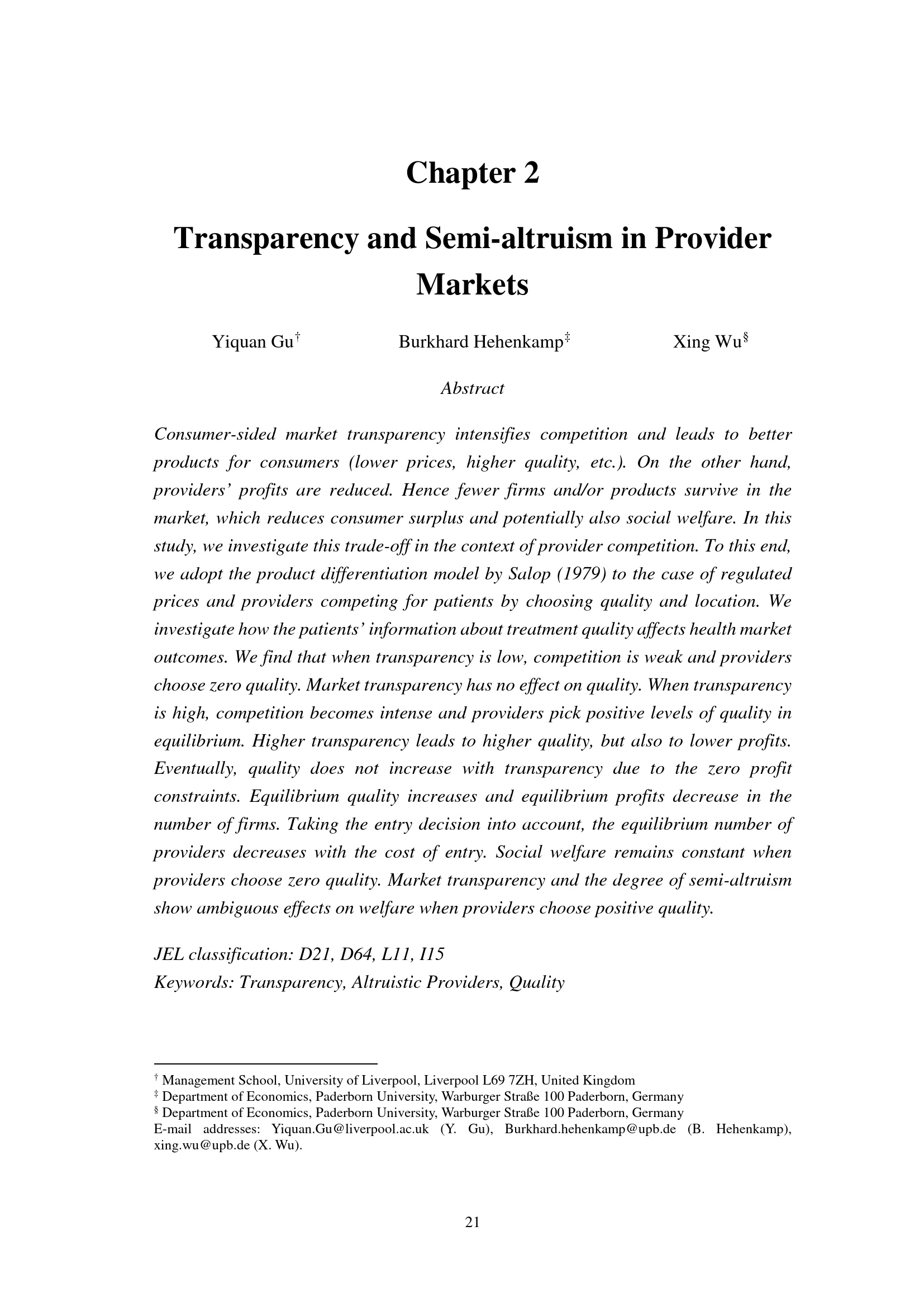 Essays on competition in health care markets / vorgelegt von Xing Wu, M.Sc.