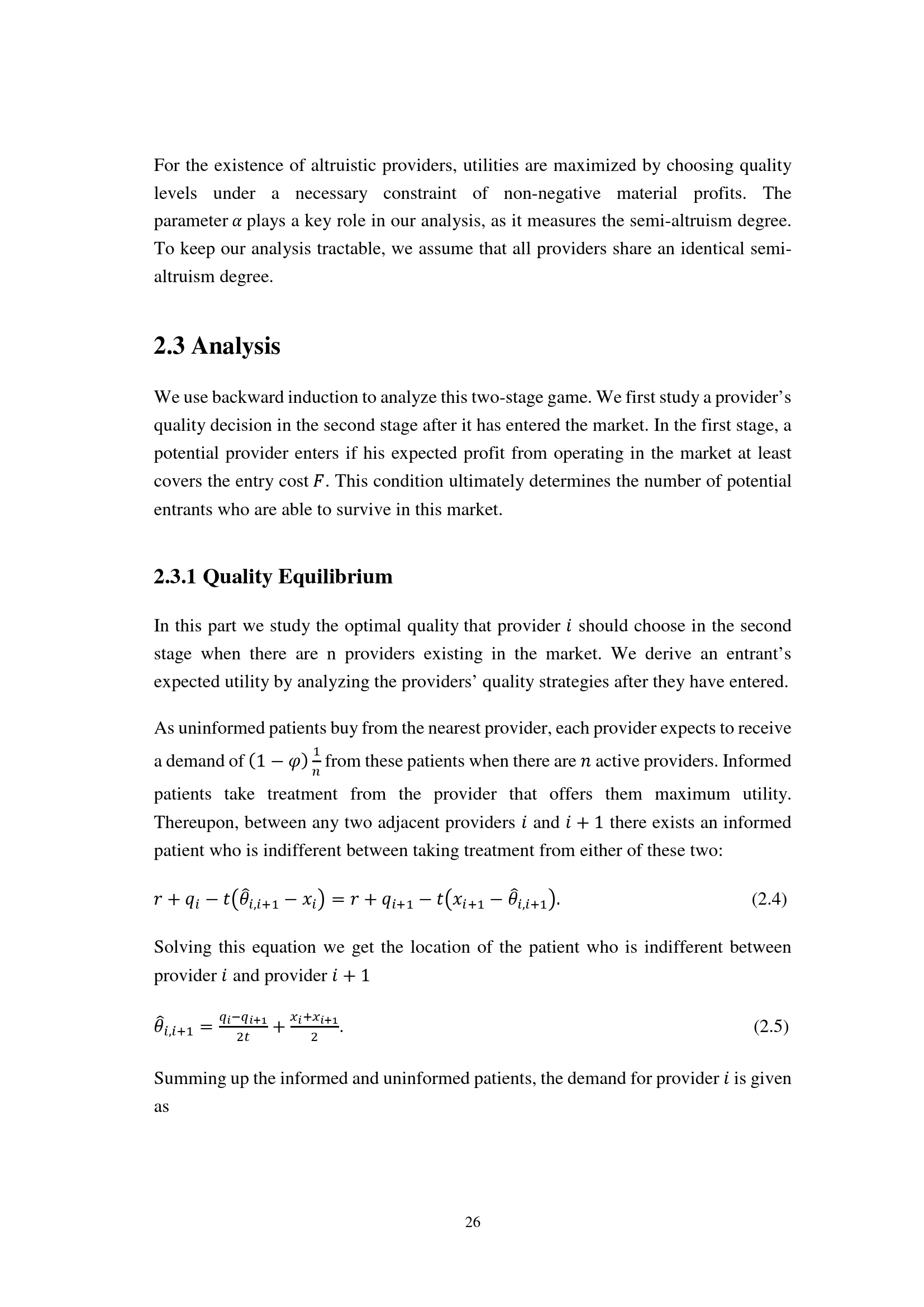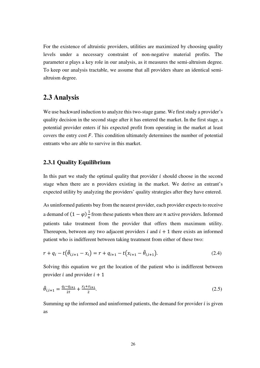 2.3.1 Quality Equilibrium