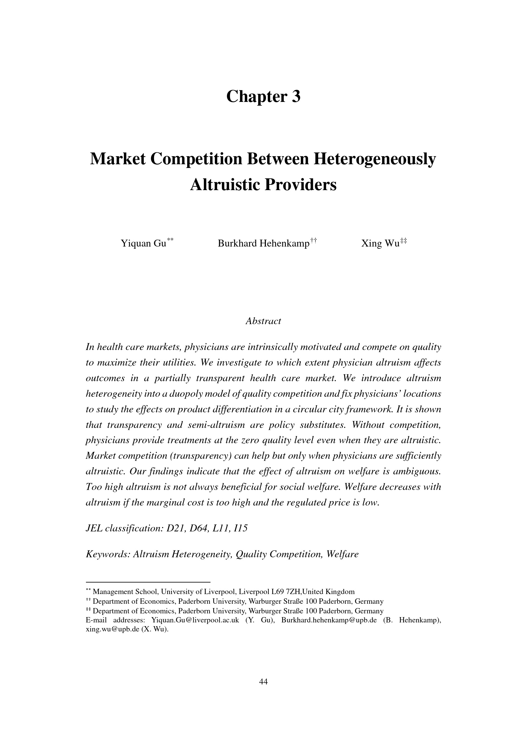 Essays on competition in health care markets / vorgelegt von Xing Wu, M.Sc.