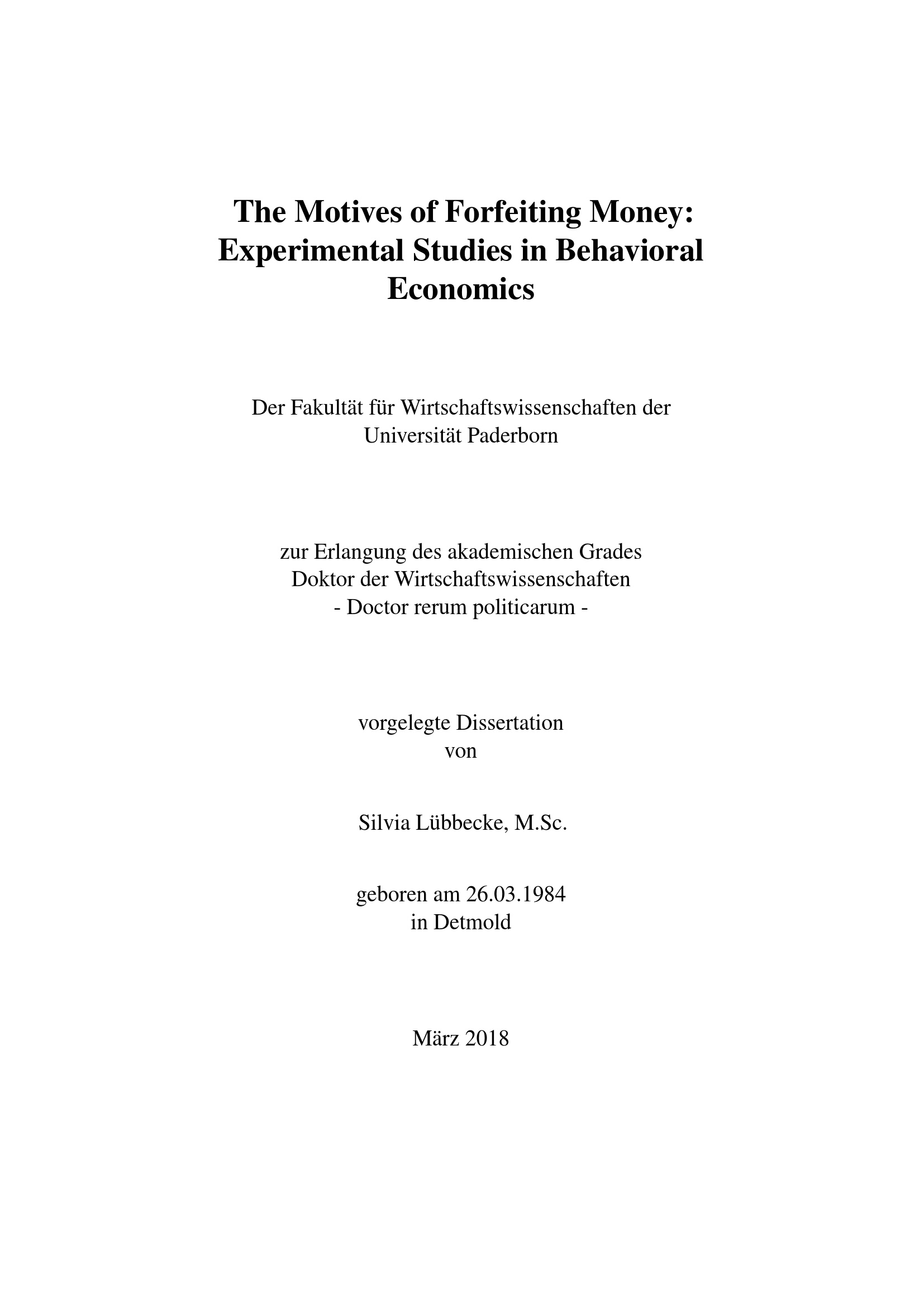 The motives of forfeiting money : experimental studies in behavioral economics / von Silvia Lübbecke
