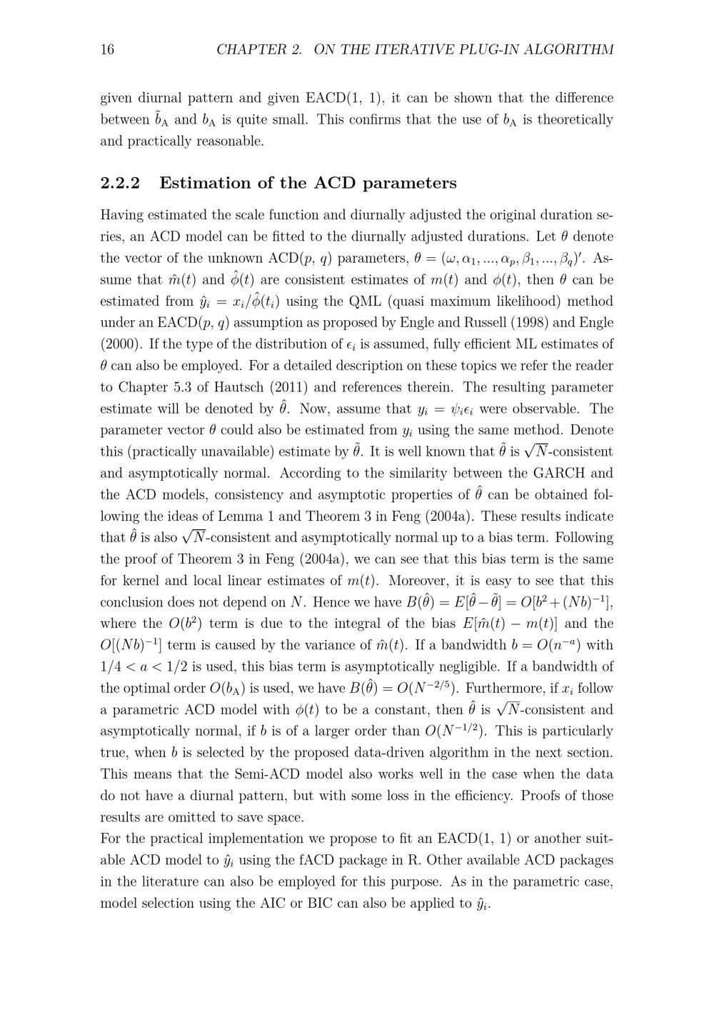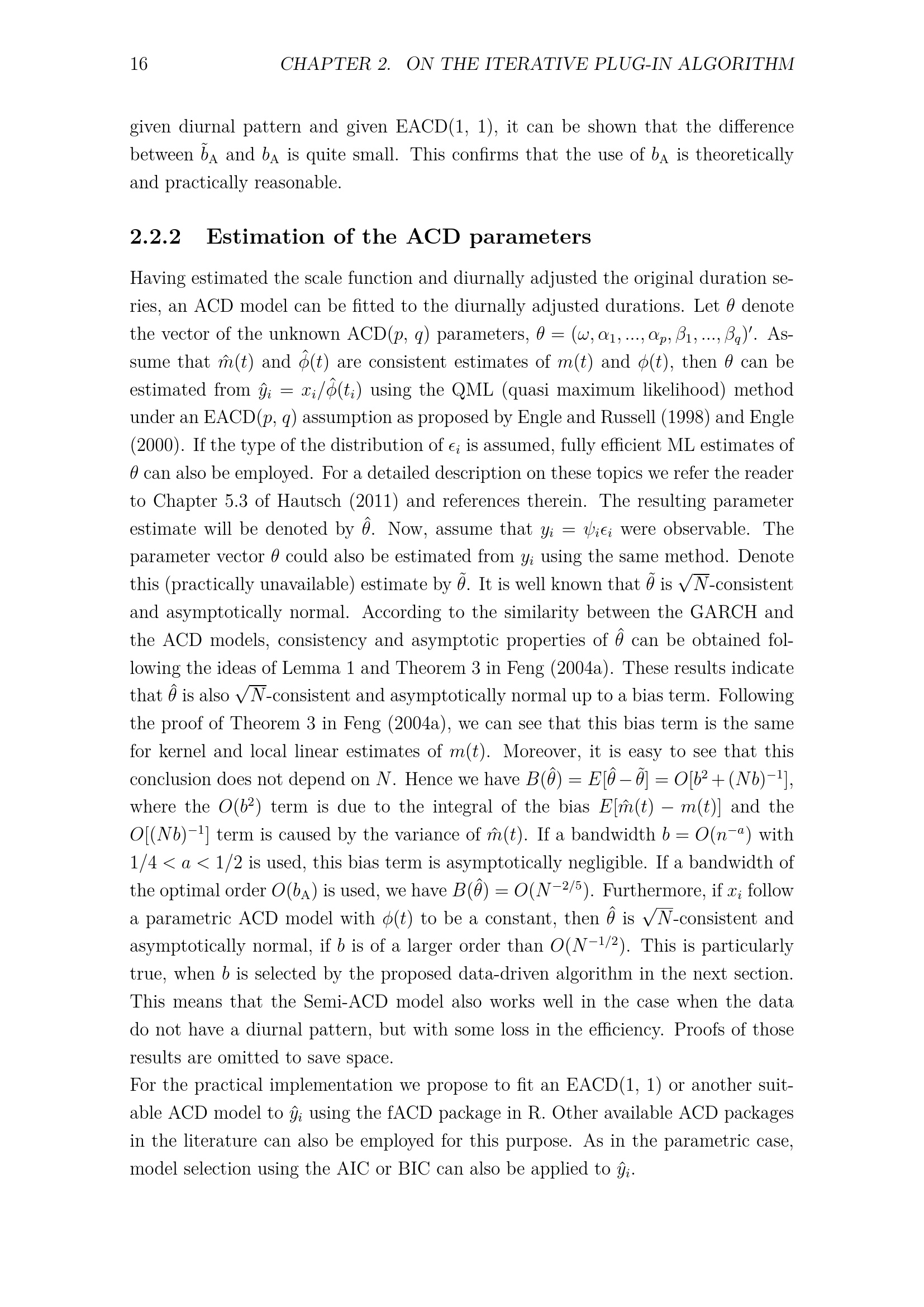 Estimation of the ACD parameters