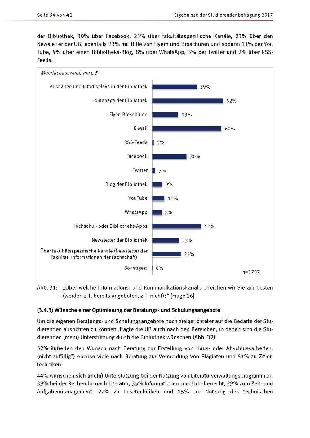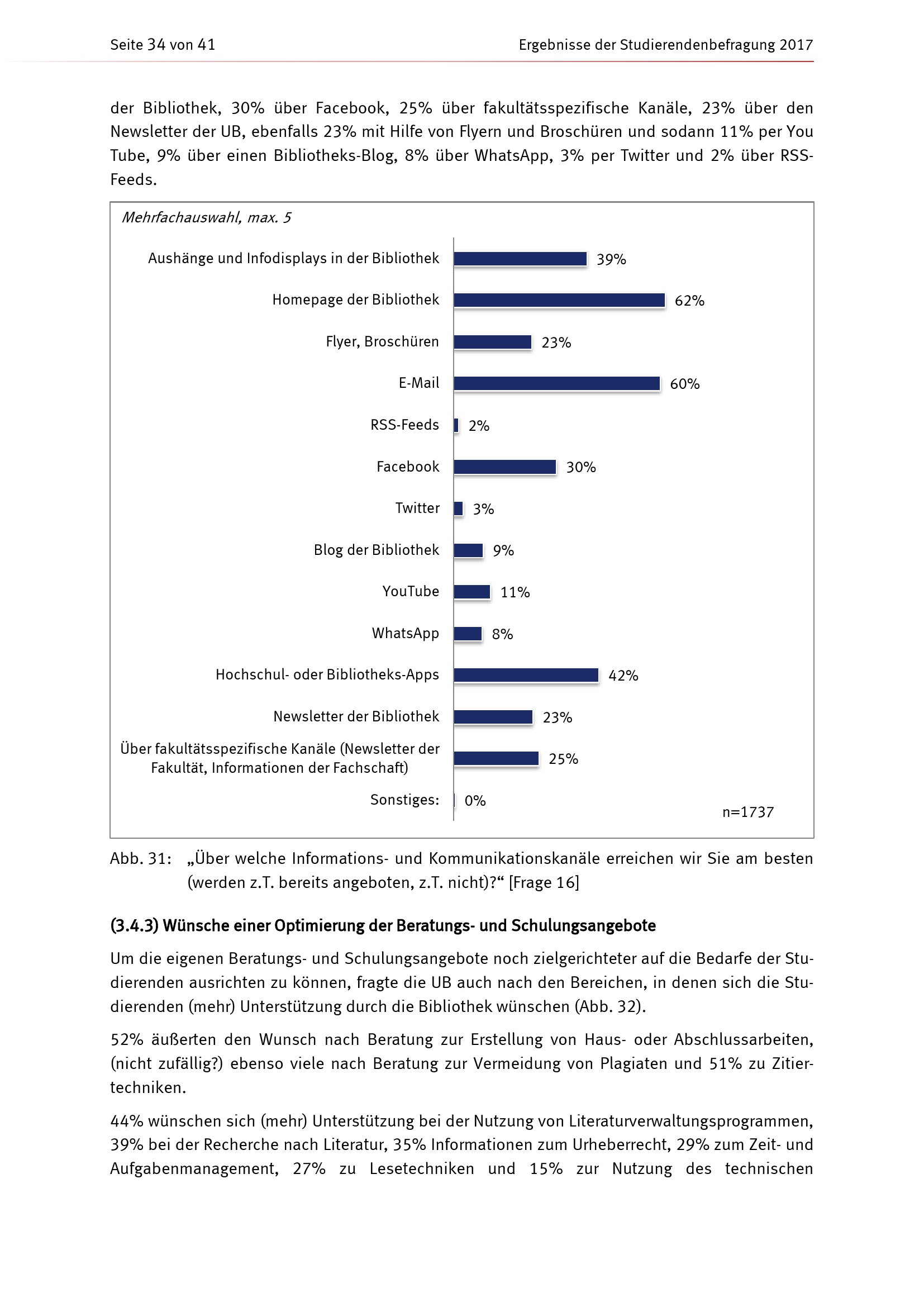 Studieren - Lernen und Arbeiten in und mit der Universitätsbibliothek Paderborn : Ergebnisse der Studierendenbefragung 2017 / Dr. Dietmar Haubfleisch, Dr. Ulrike Hesse