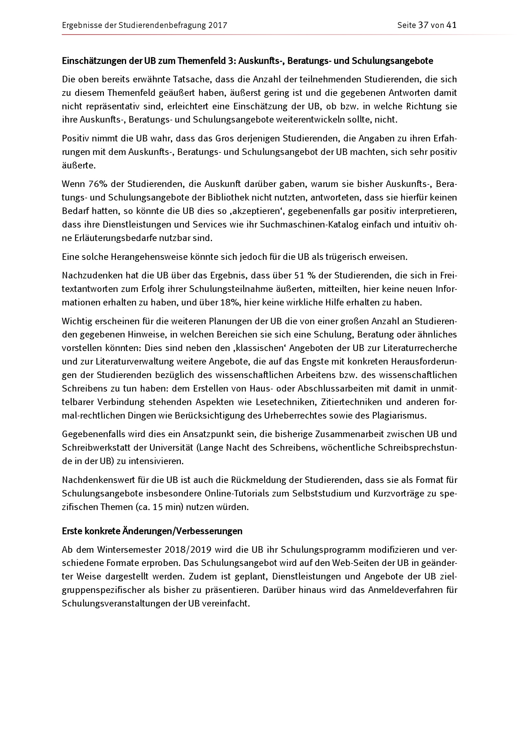 Studieren - Lernen und Arbeiten in und mit der Universitätsbibliothek Paderborn : Ergebnisse der Studierendenbefragung 2017 / Dr. Dietmar Haubfleisch, Dr. Ulrike Hesse