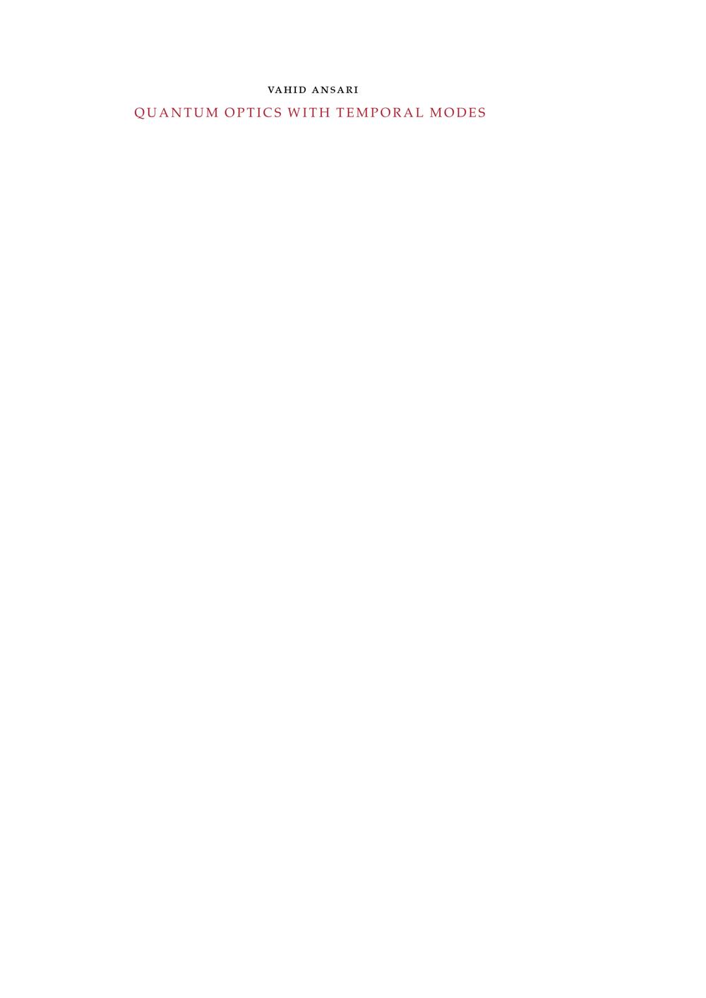 Quantum optics with temporal modes / vorgelegt von Vahid Ansari