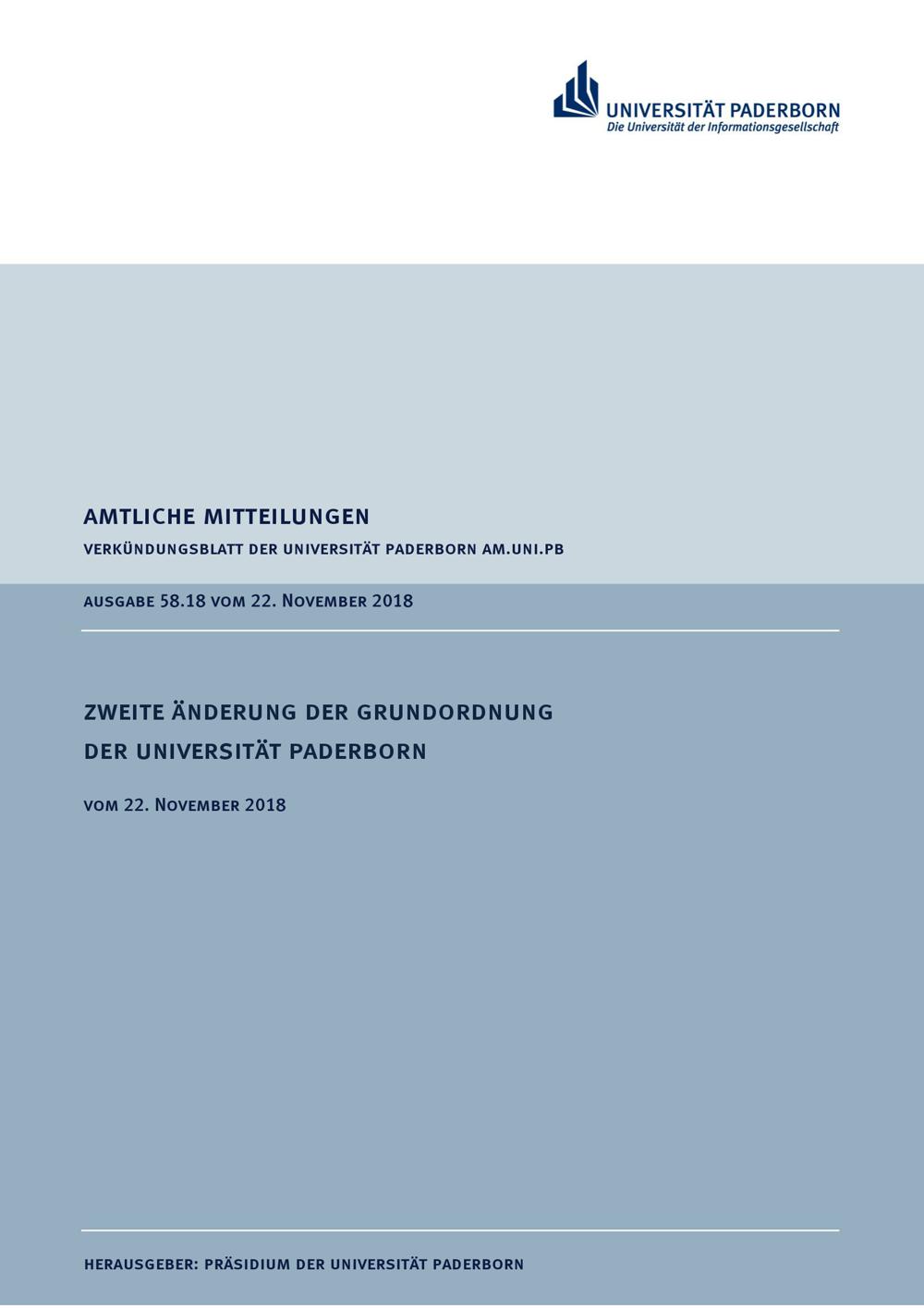 Zweite Änderung der Grundordnung der Universität Paderborn : vom 22. November 2018