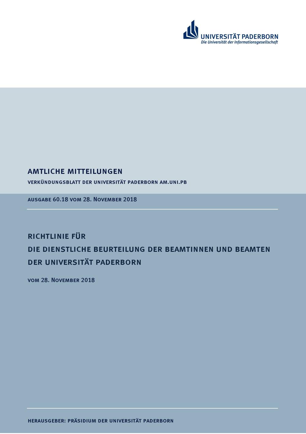 Richtlinie für die dienstliche Beurteilung der Beamtinnen und Beamten der Universität Paderborn : vom 28. November 2018