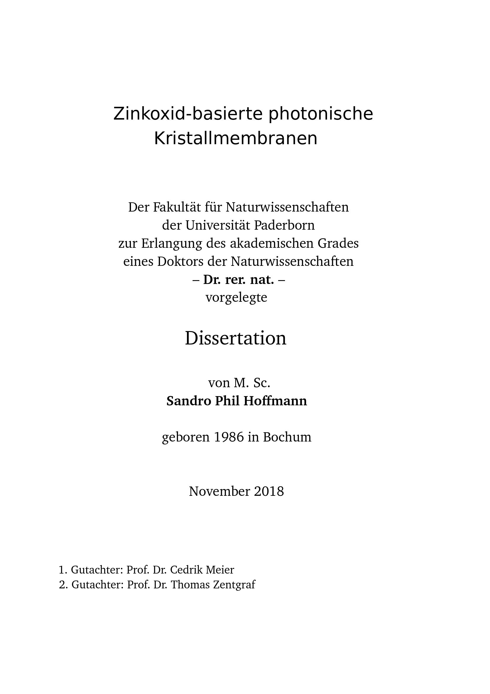 Zinkoxid-basierte photonische Kristallmembranen / von M. Sc. Sandro Phil Hoffmann
