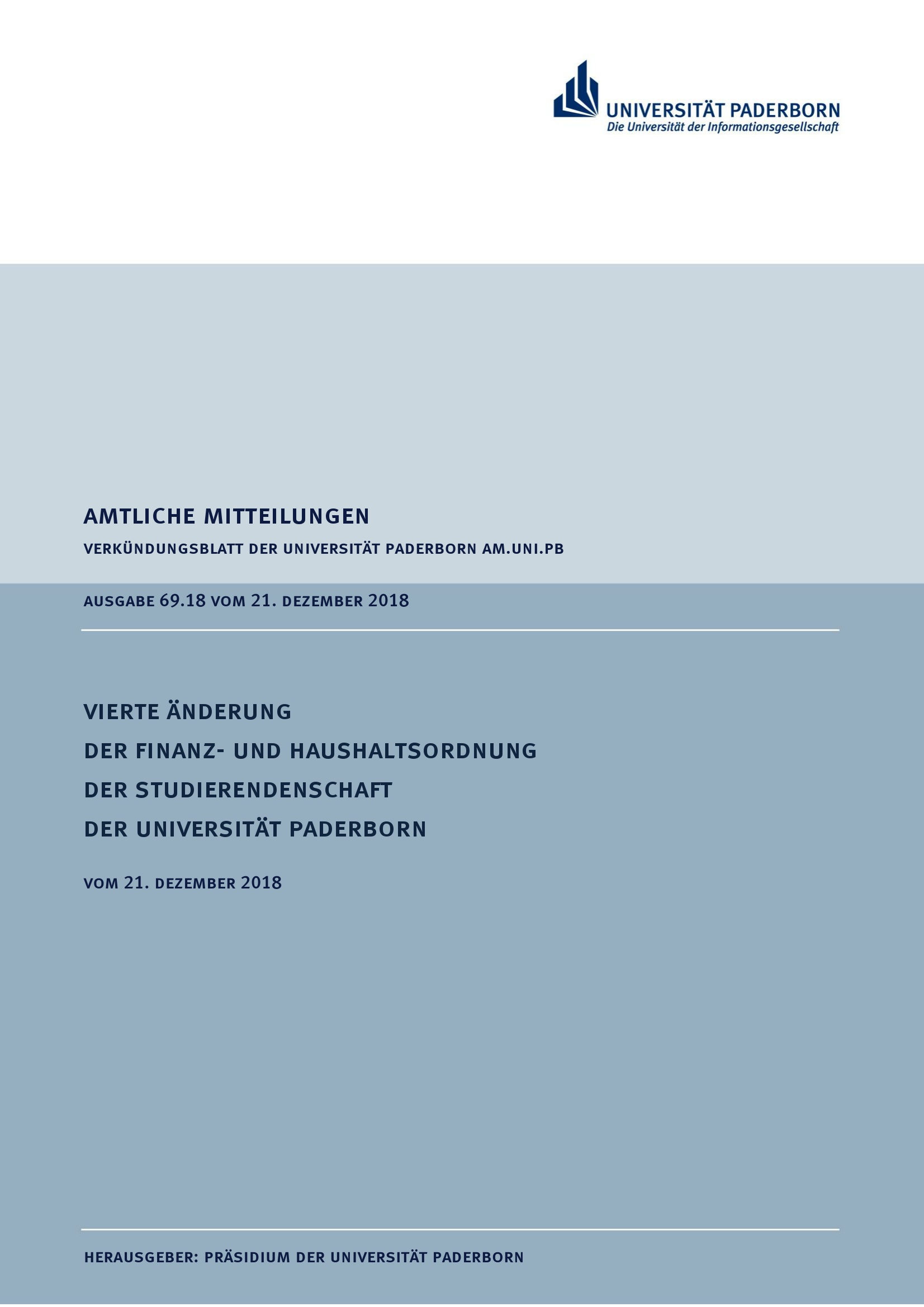 Vierte Änderung der Finanz- und Haushaltsordnung der Studierendenschaft der Universität Paderborn : vom 21. Dezember 2018
