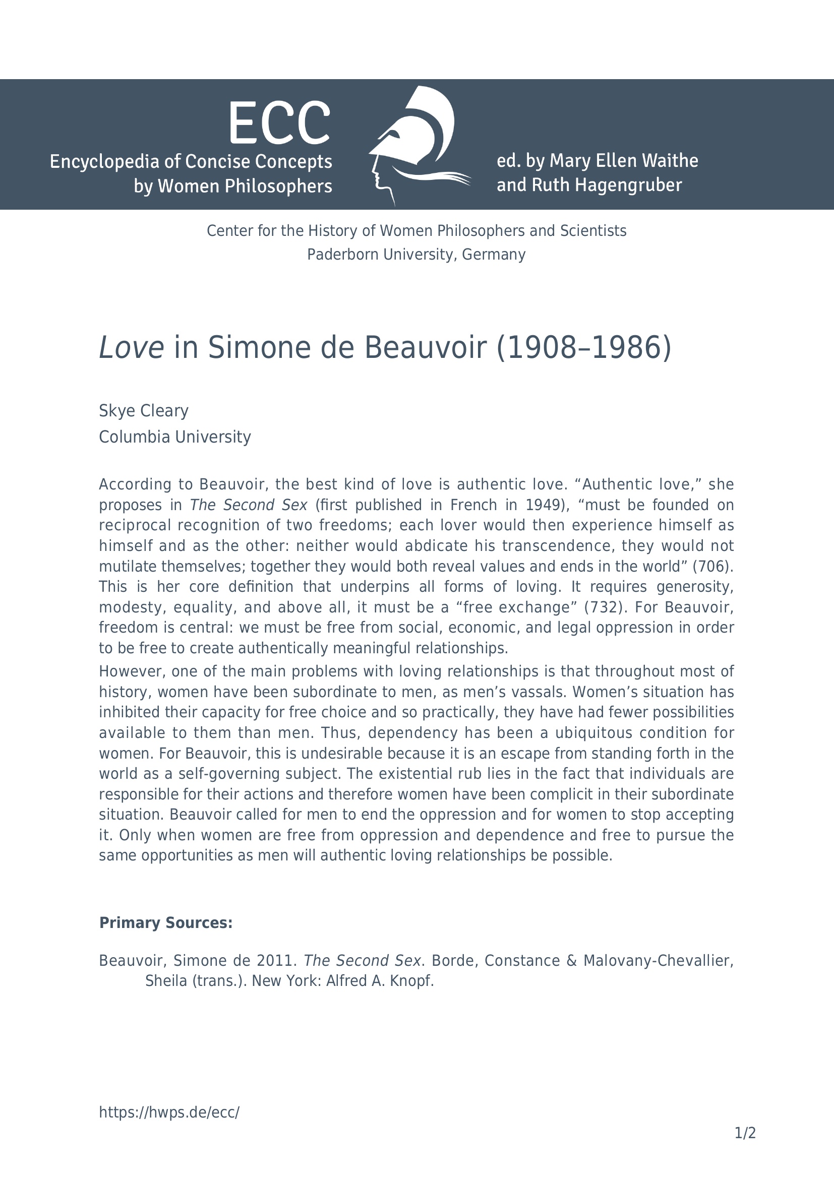 Love in Simone de Beauvoir (1908-1986) / Skye Cleary, Columbia University