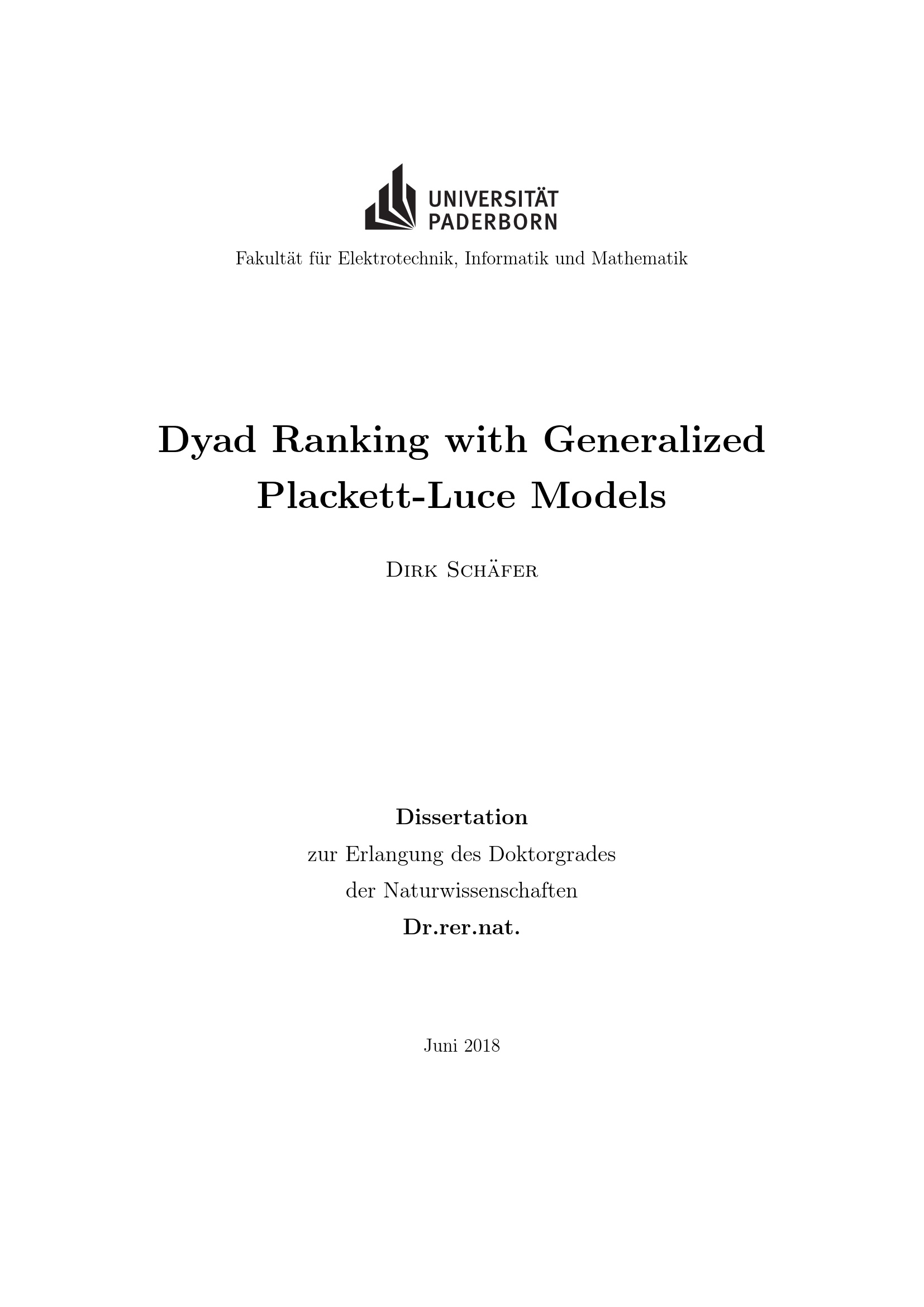 Dyad ranking with generalized Plackett-Luce models / Dirk Schäfer