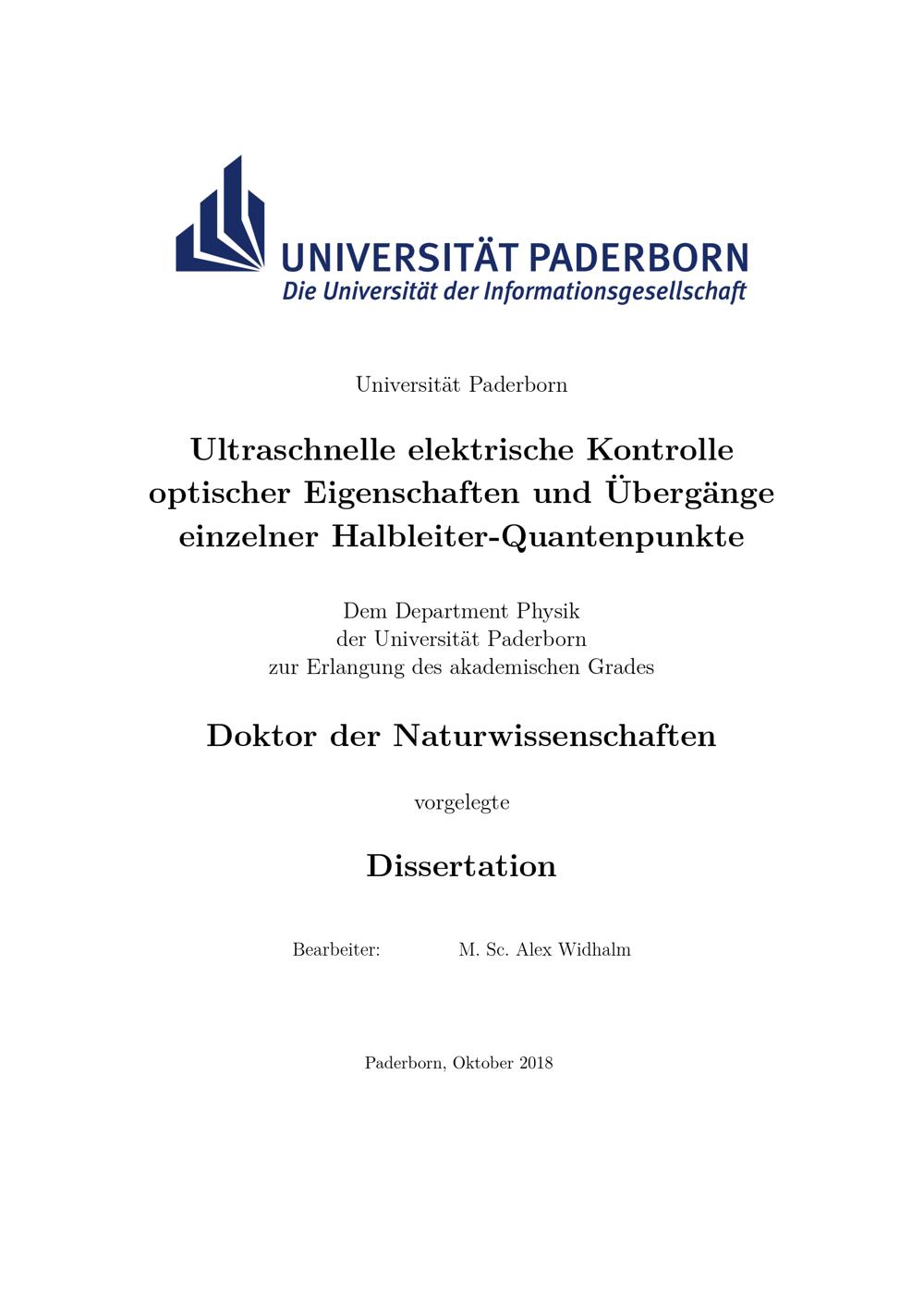 Ultraschnelle elektrische Kontrolle optischer Eigenschaften und Übergänge einzelner Halbleiter-Quantenpunkte / Bearbeiter: M. Sc. Alex Widhalm