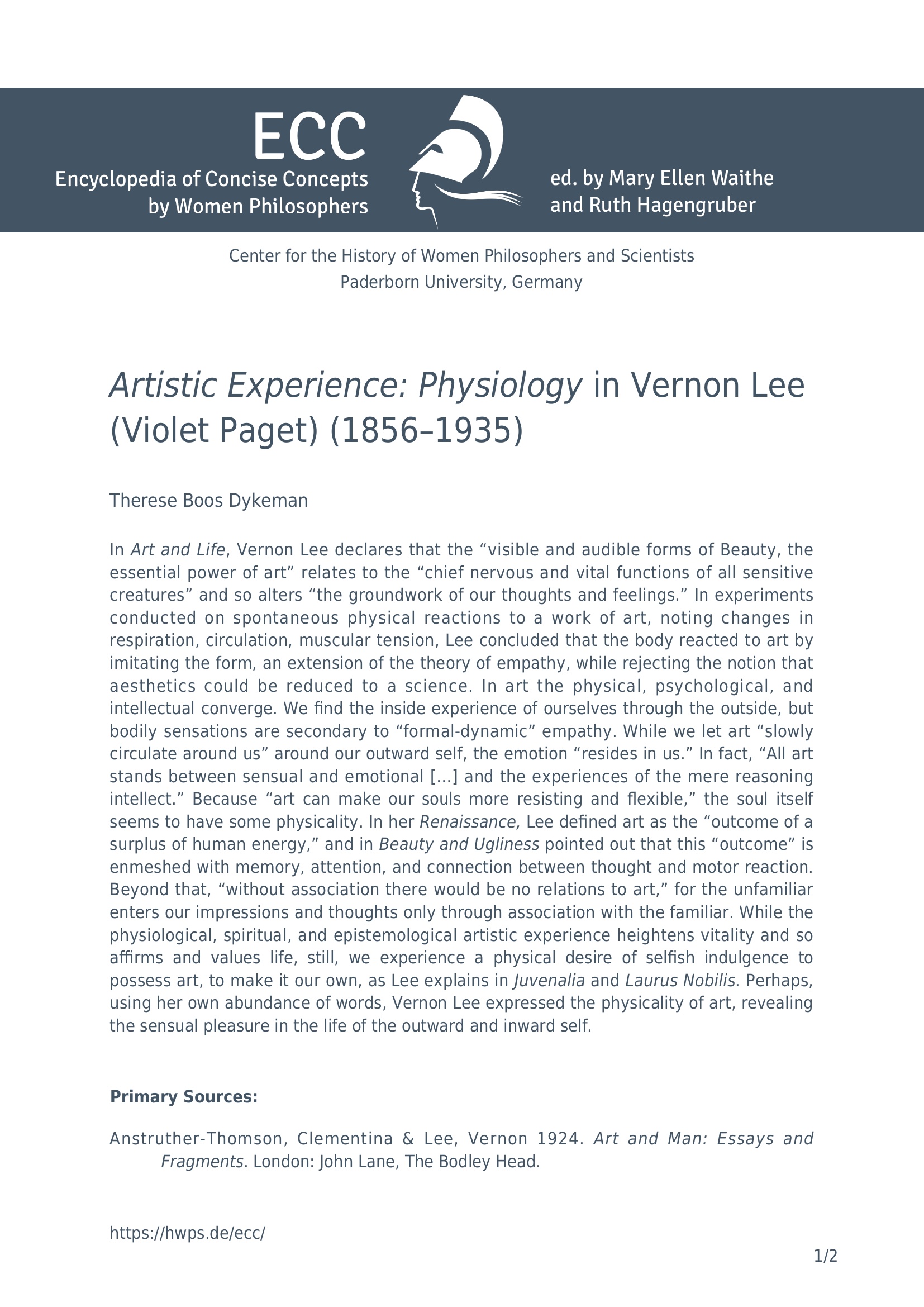 Artistic experience: physiology in Vernon Lee (Violet Paget) (1856-1935) / Therese Boos Dykeman