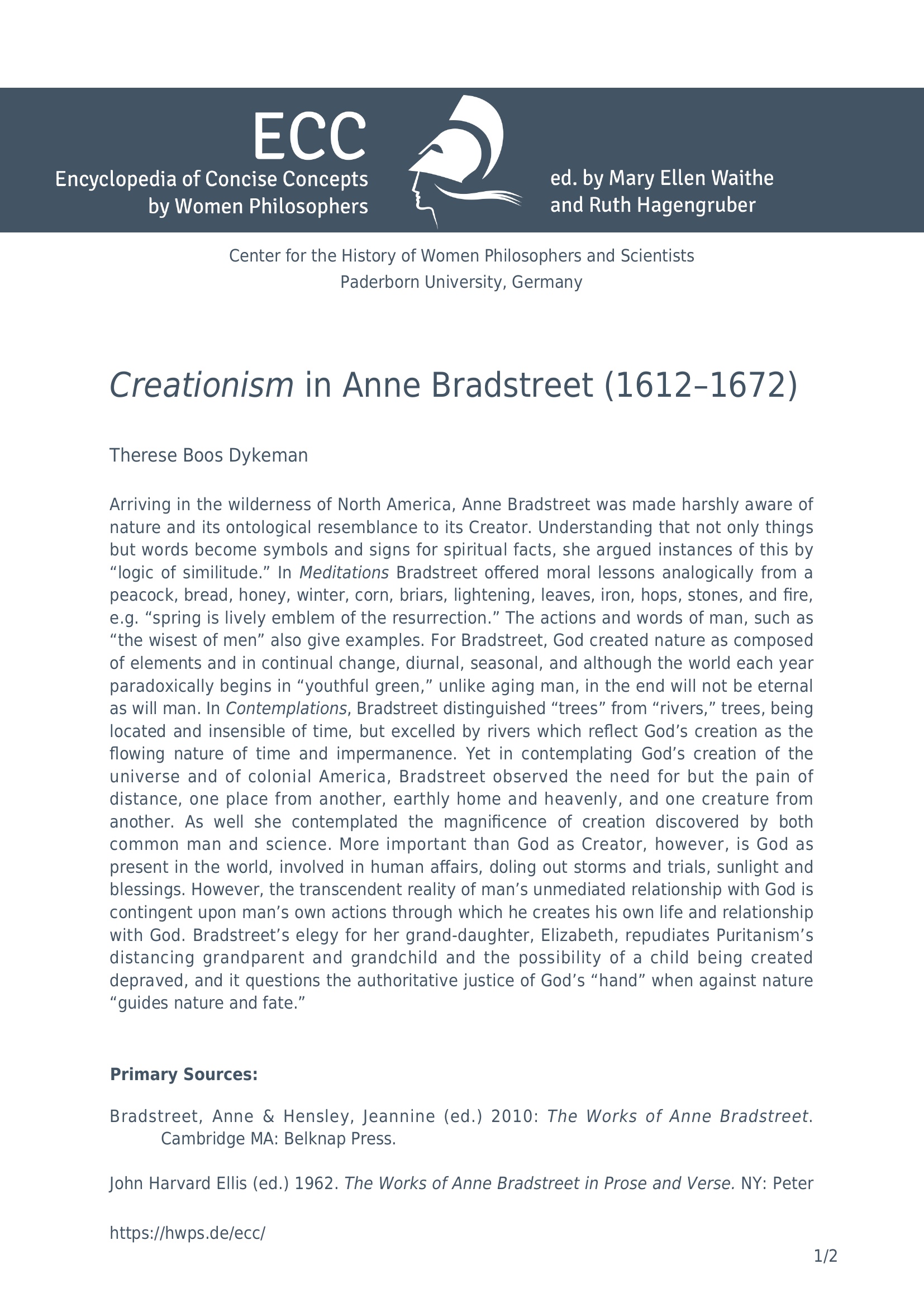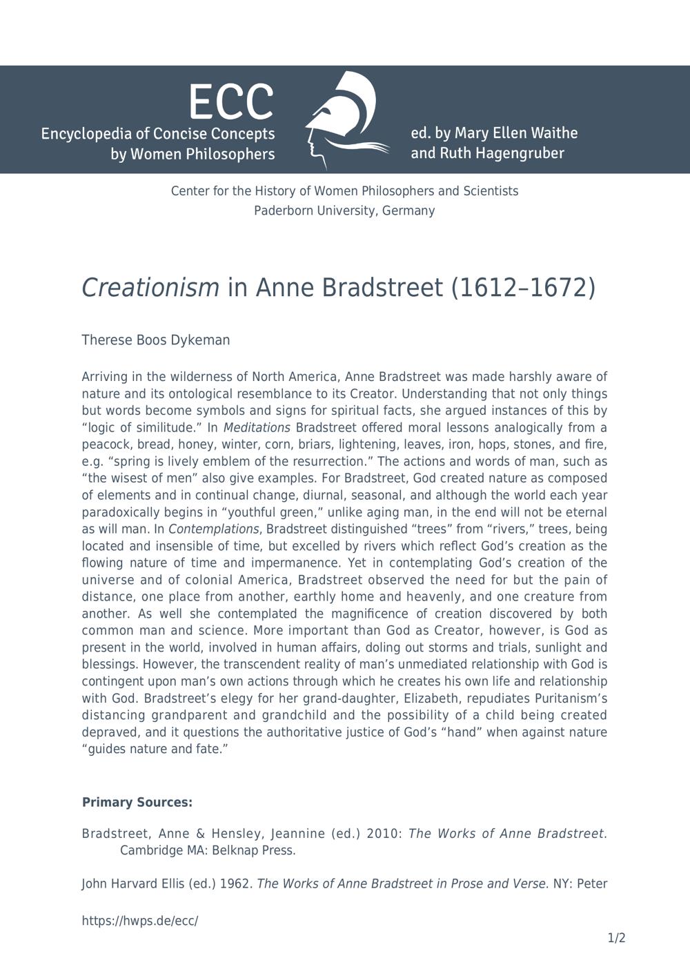 Creationism in Anne Bradstreet (1612-1672) / Therese Boos Dykeman