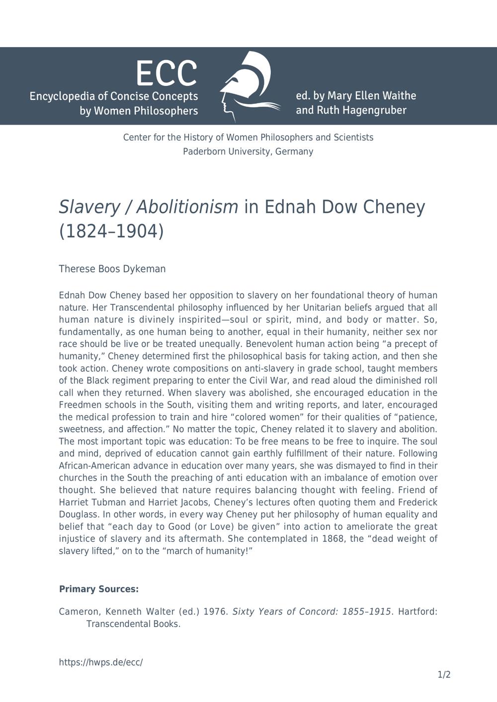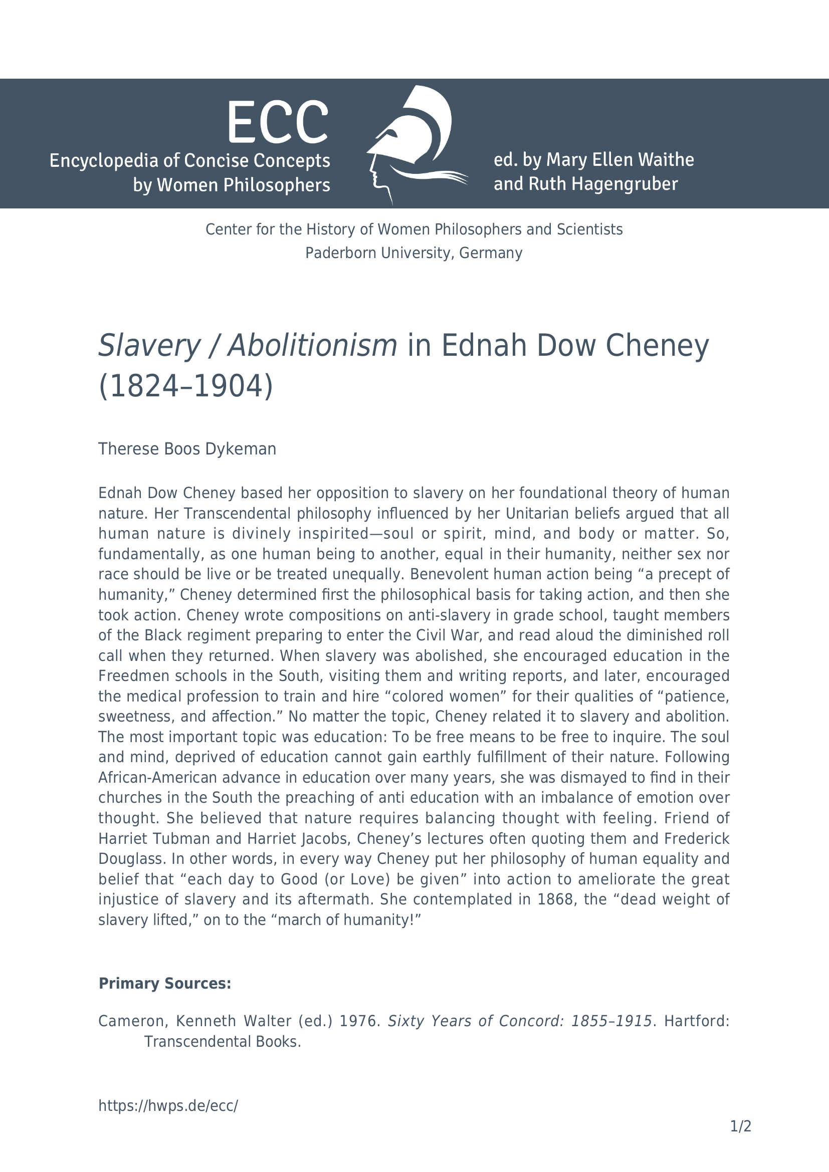 Slavery / abolitionism in Ednah Dow Cheney (1824-1904) / Therese Boos Dykeman
