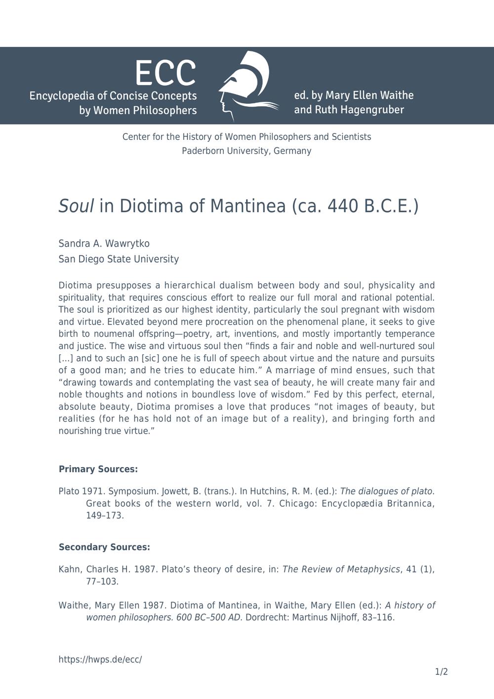 Soul in Diotima of Mantinea (ca. 440 B.C.E.) / Sandra A. Wawrytko, San Diego State University