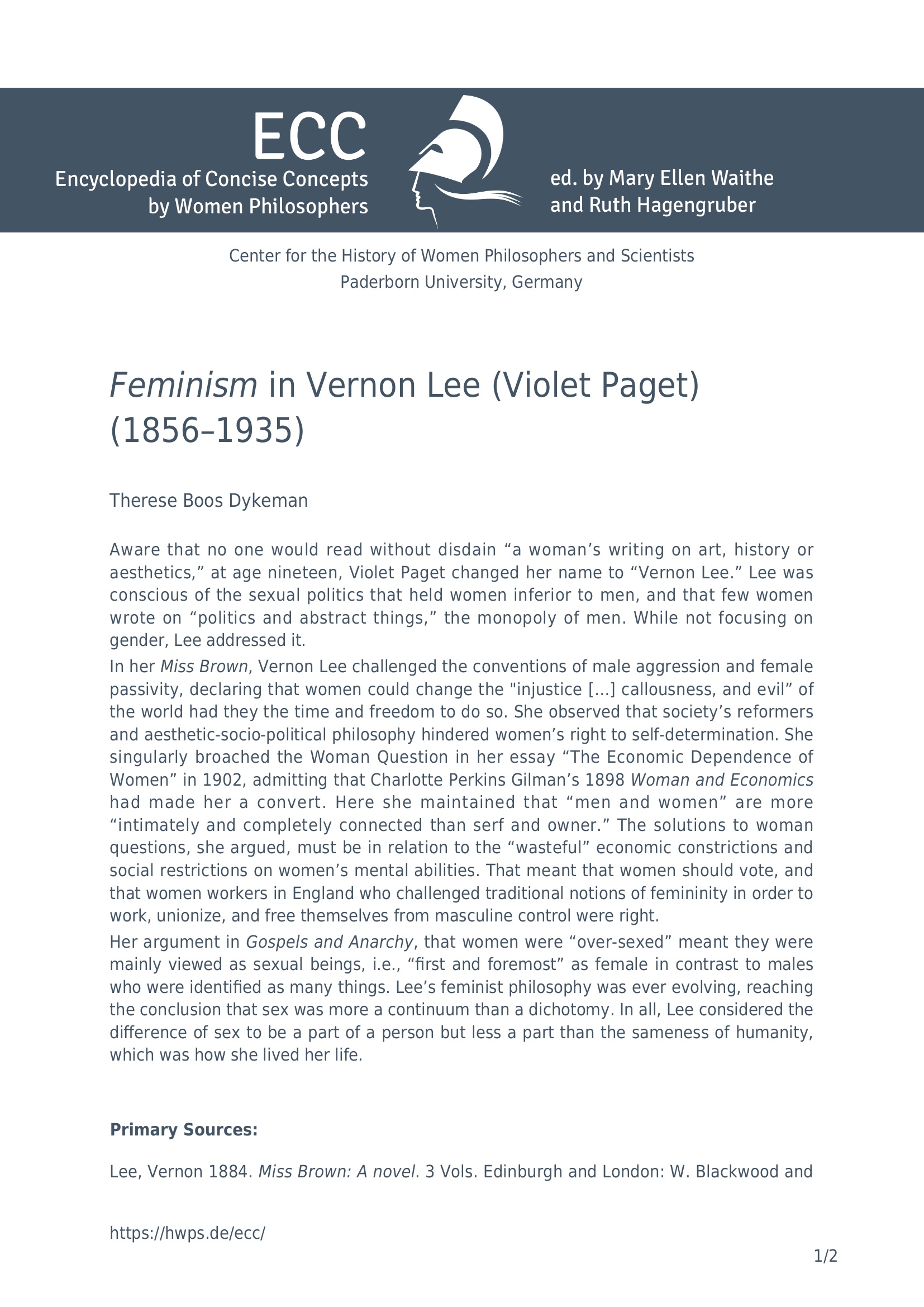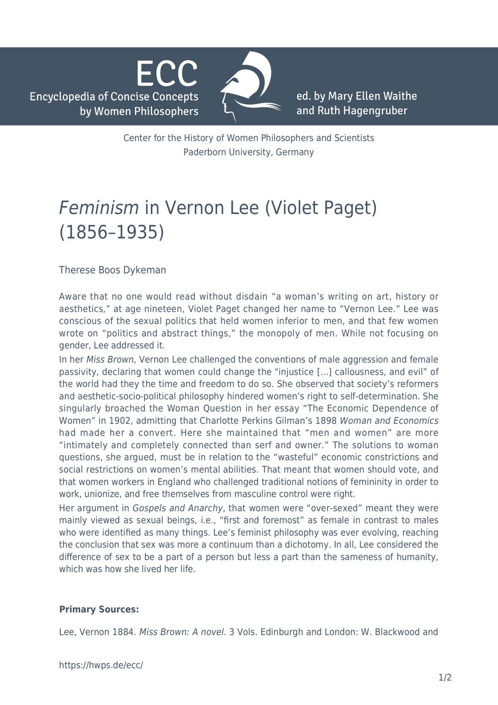 Feminism in Vernon Lee (Violet Paget) (1856-1935) / Therese Boos Dykeman