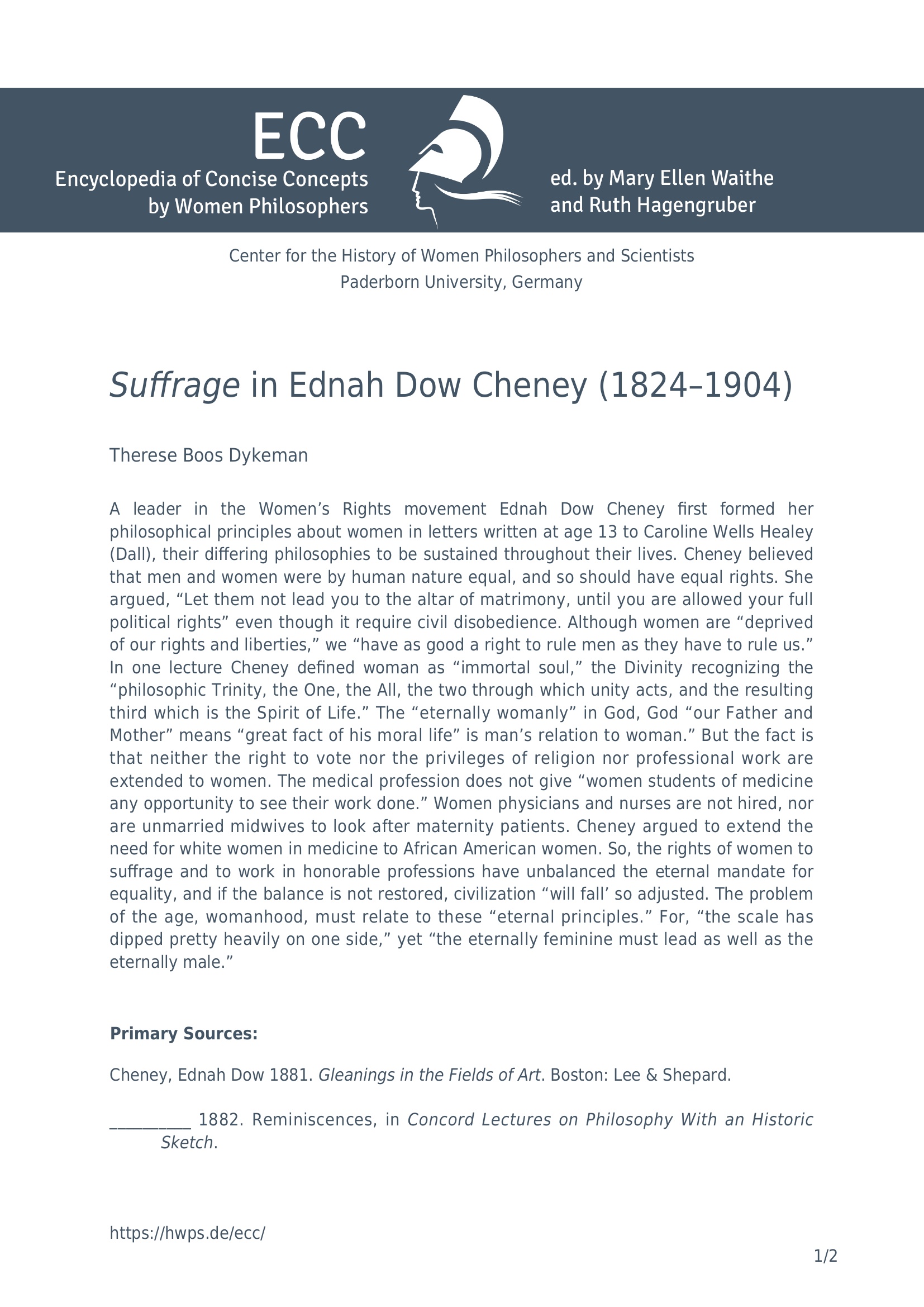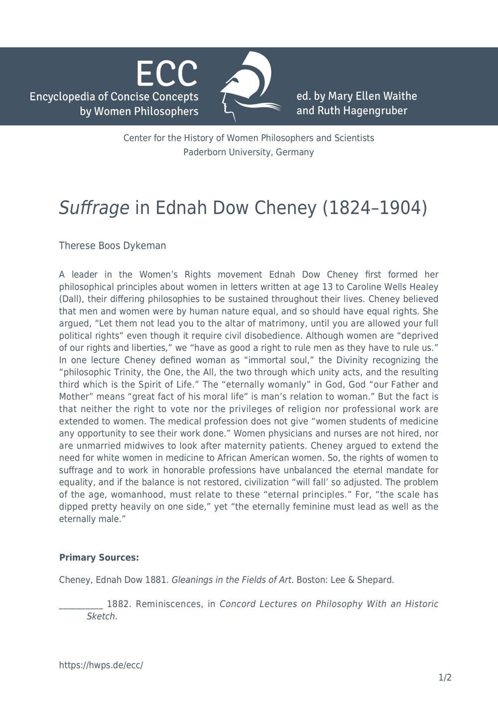 Suffrage in Ednah Dow Cheney (1824-1904) / Therese Boos Dykeman